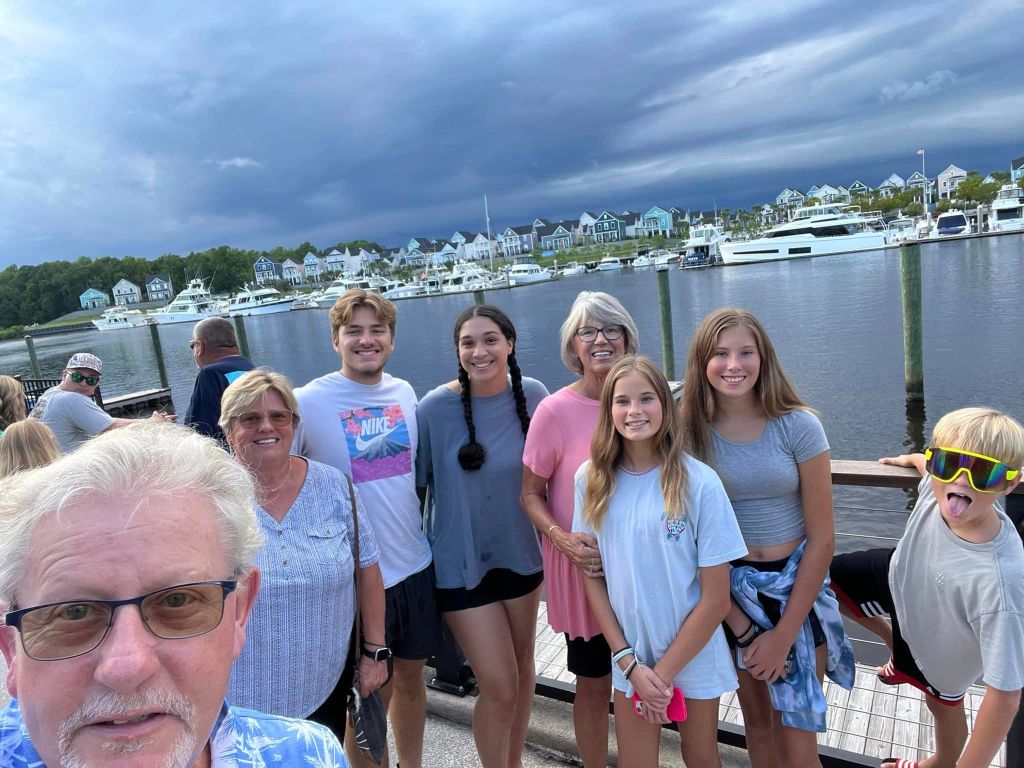 Extended family and grandkids – at Barefoot Landing, S.C. at the marina.