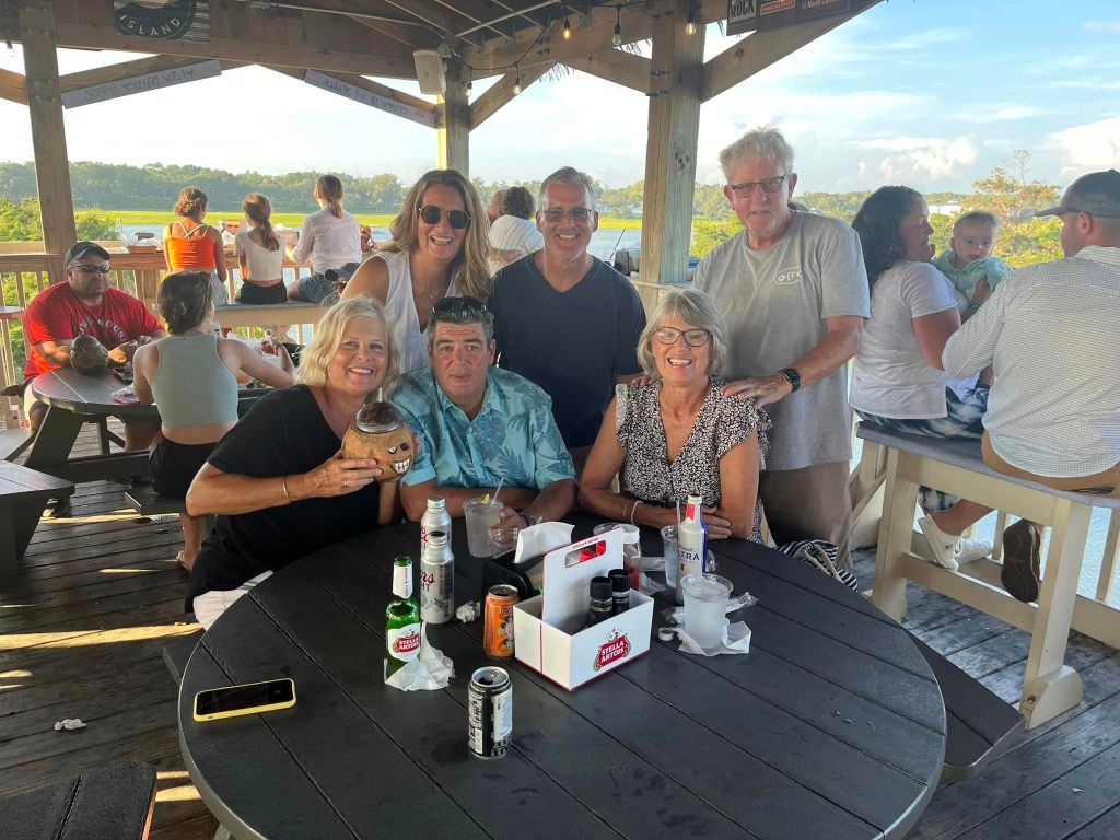 We have made new friends in Cameron Woods Community – getting together at different places by the water for food and drink!