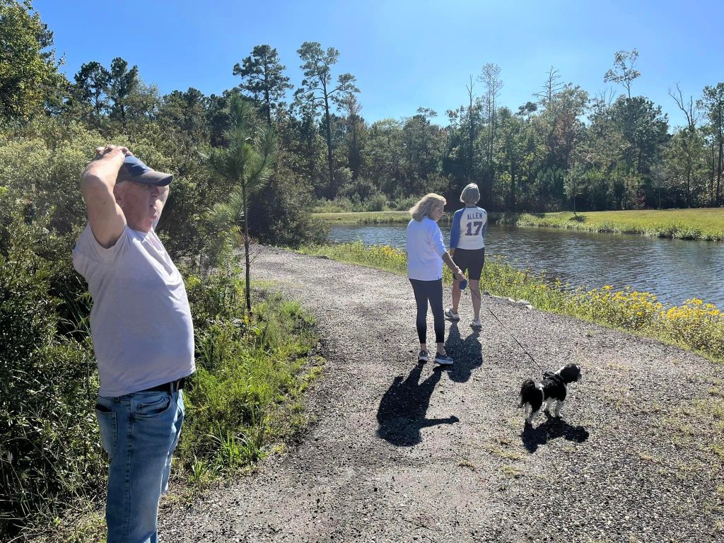 Their little dog Bo has been with them for over a year now – here we are walking around one of our ponds!