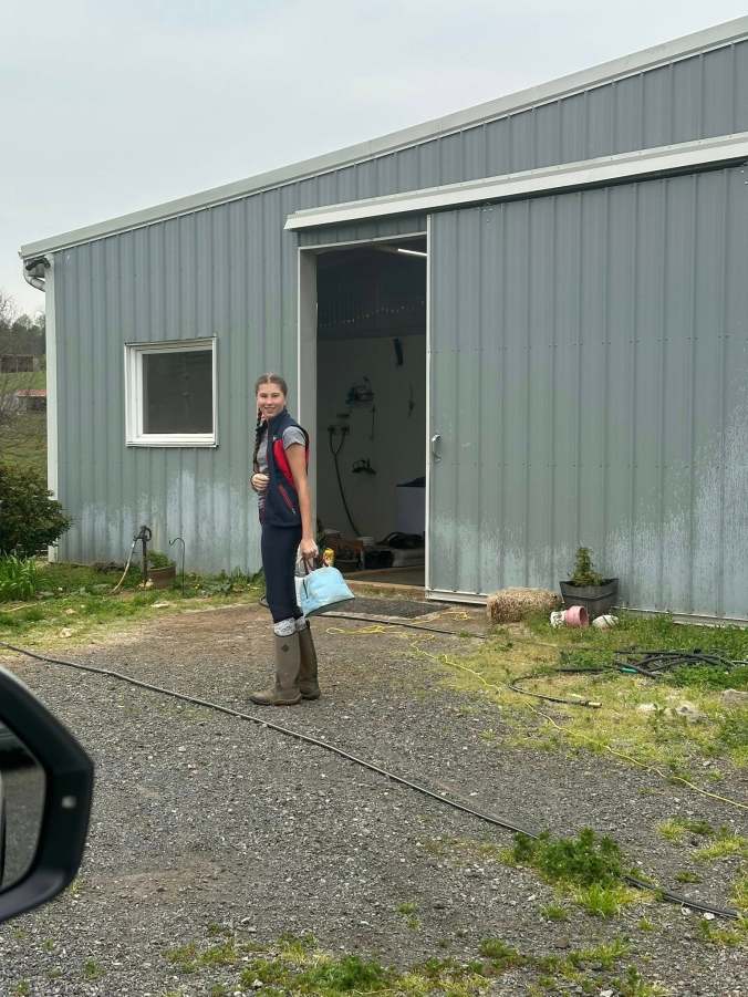 Spending her free time working in the barn –