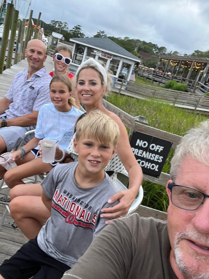 The youngest grandkids and their parents at the waterfront at Calabash!