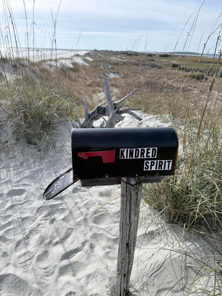 A walk South on the beach for 1 1/2 miles brings you to THE KINDRED SPIRIT MAILBOX!