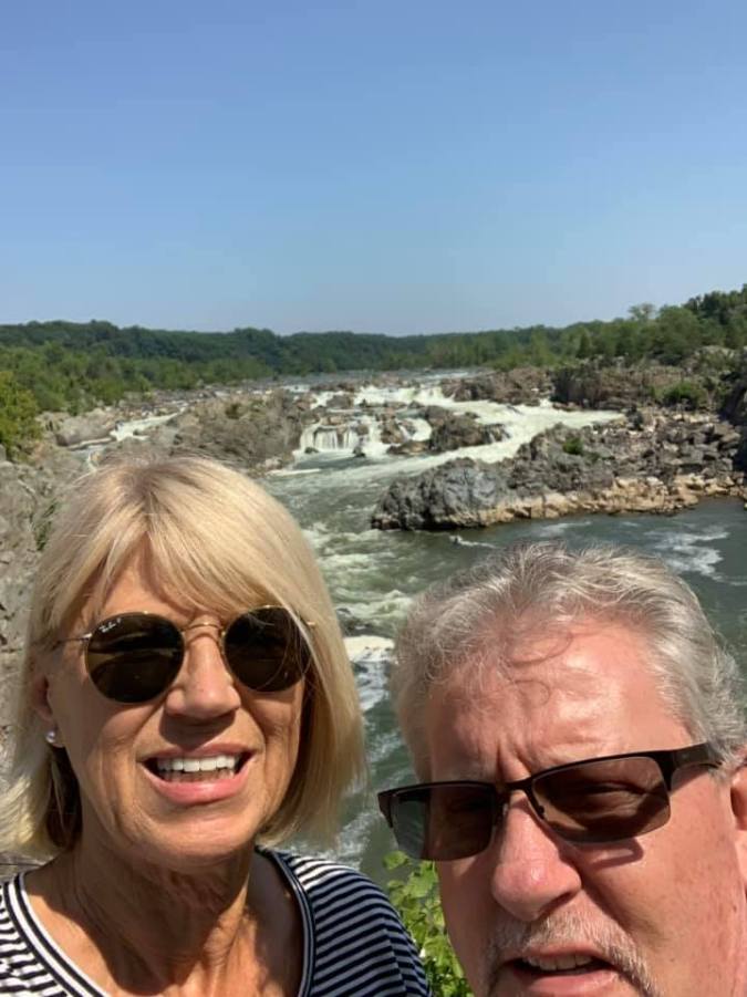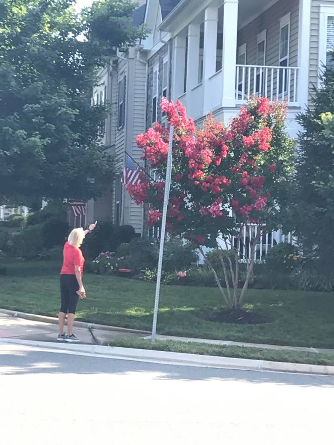 Sherry is pointing at one of the Crepe Myrtles I planted –