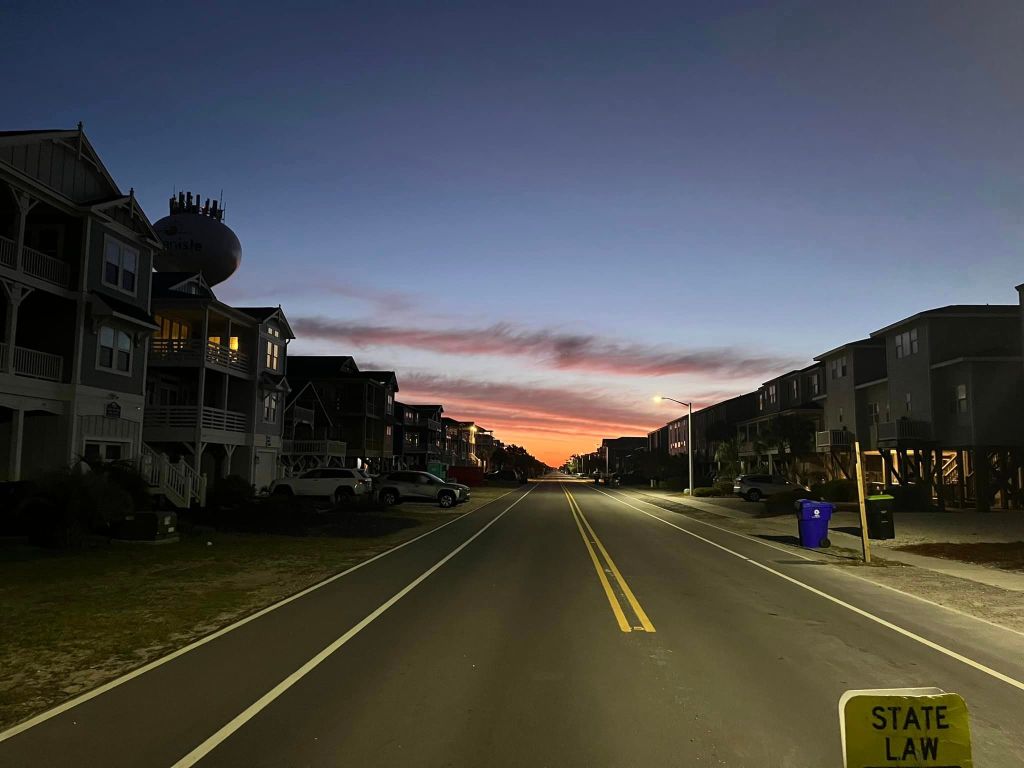 This is Sunset Beach and in the far right corner – the tall building is Ocean Isle Beach – with a channel separating the two islands.