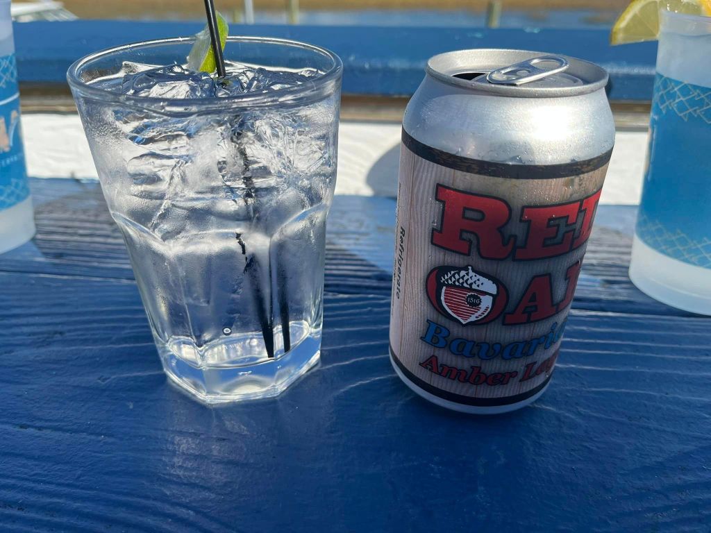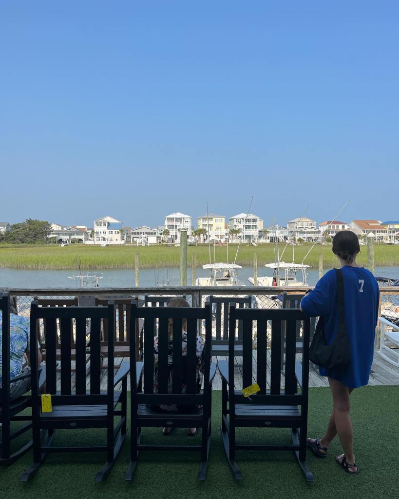Maddy looked out over the cove on the backside of OIB at OIB FISH COMPANY where stopped for drinks and appetizers.