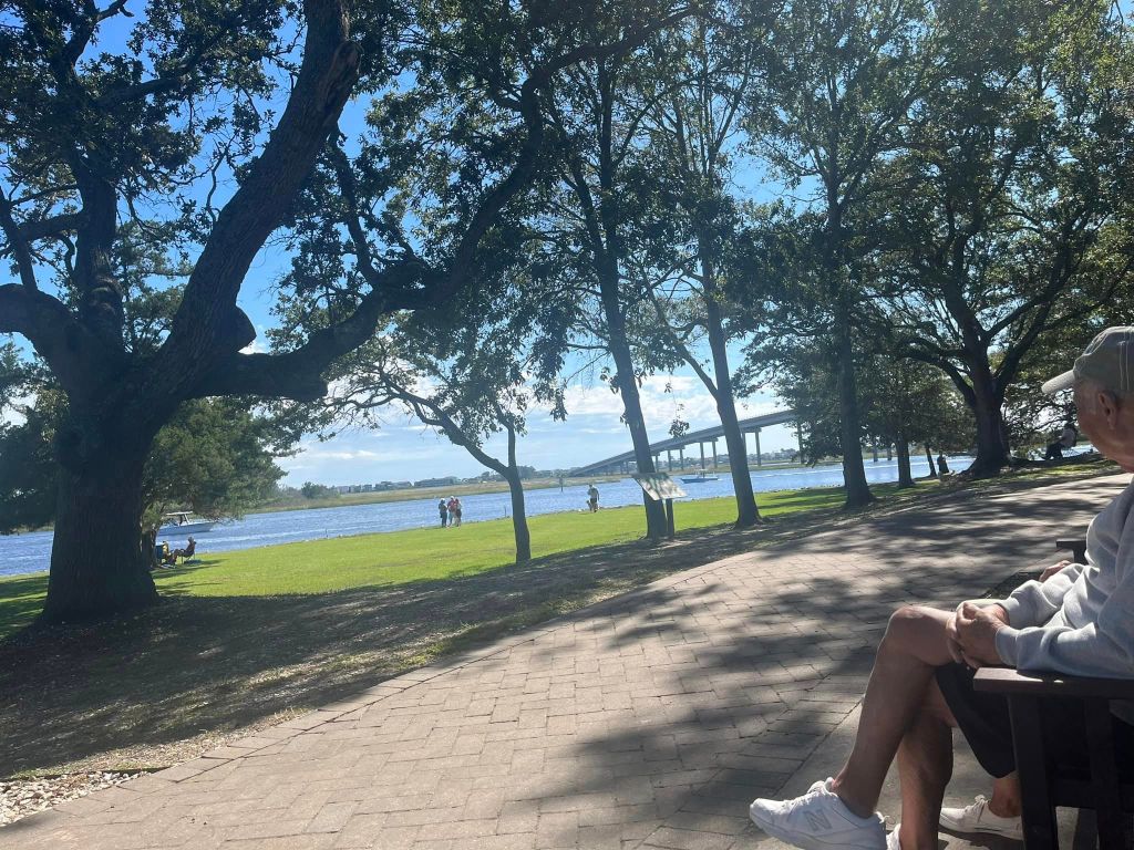 Living where we do – ten minutes and we are here – walking the beach or the streets – enjoying the park which they are now constructing a basketball court – pickleball court and a covered picnic shelter to go along with the stage – splash park – playground – restrooms and open-air concerts in the Summer from May to September!