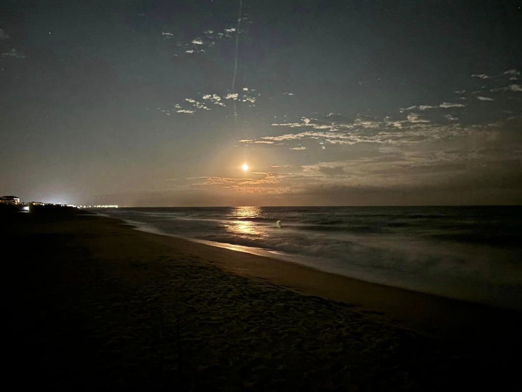 The beach is wide at low tide and Sunset Beach is flatter than OIB – making it easier to walk on.