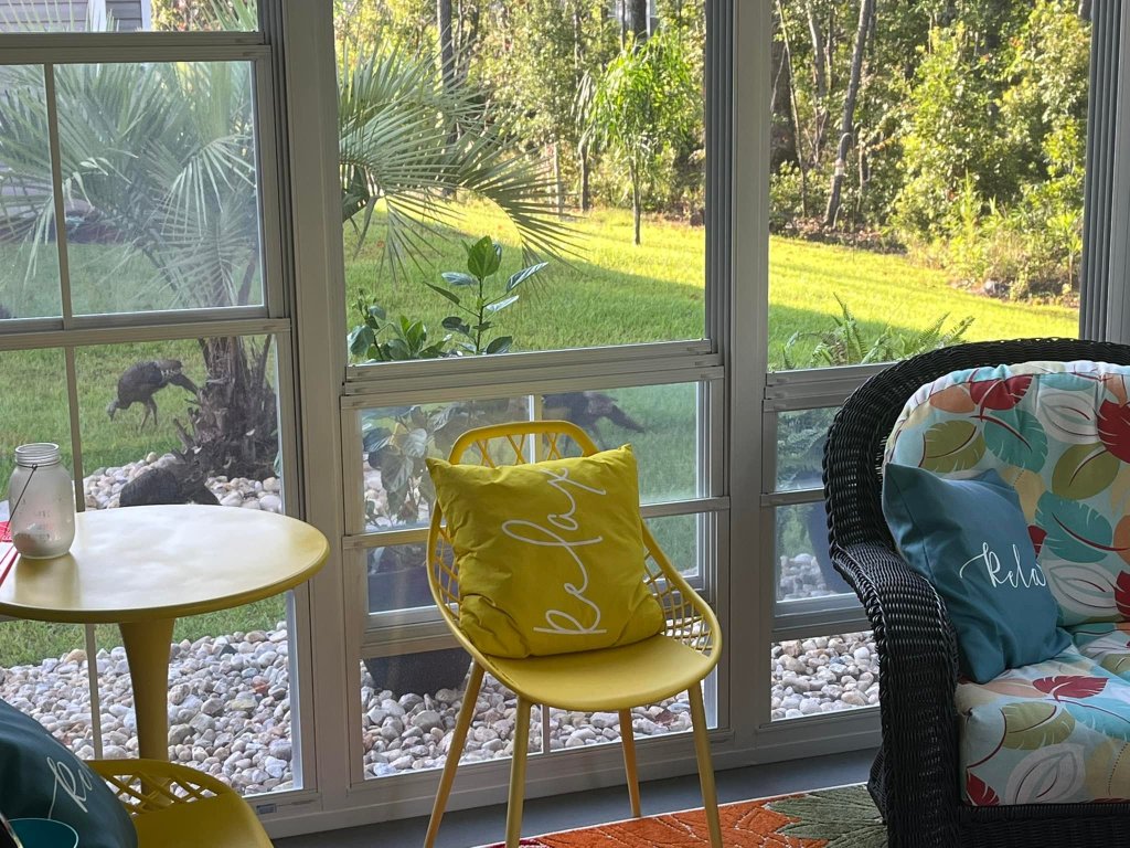 My coffee and my new spot to sip and watch – but – watching is difficult