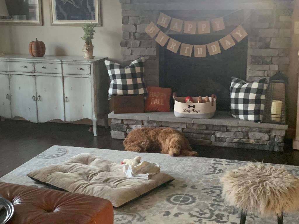 And at night – after all day with MARLEY and the little ones – sleep was welcomed! LOLA very proud grandmother – Sherry with all four – missing the two oldest who are in college – best birthday among