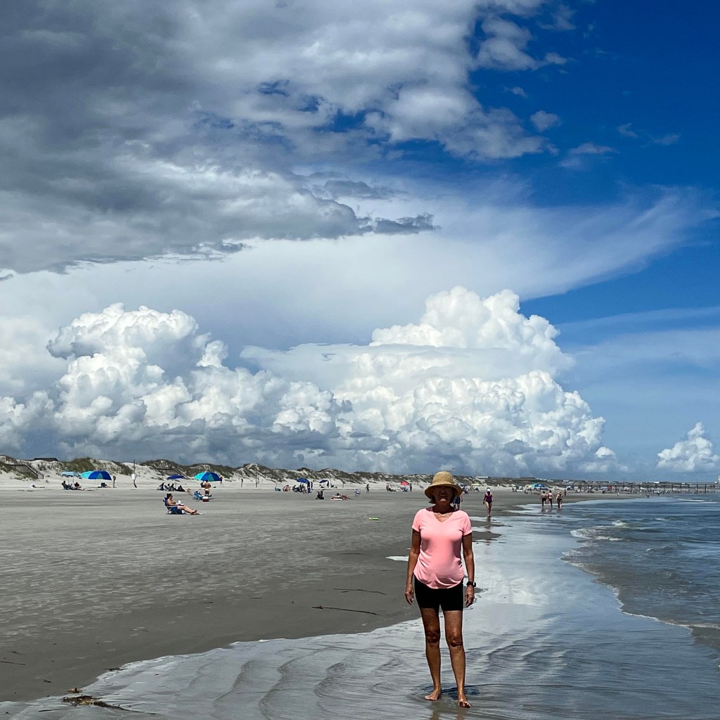 July 2024 – on the beach celebrating both of our 75th. birthdays!
