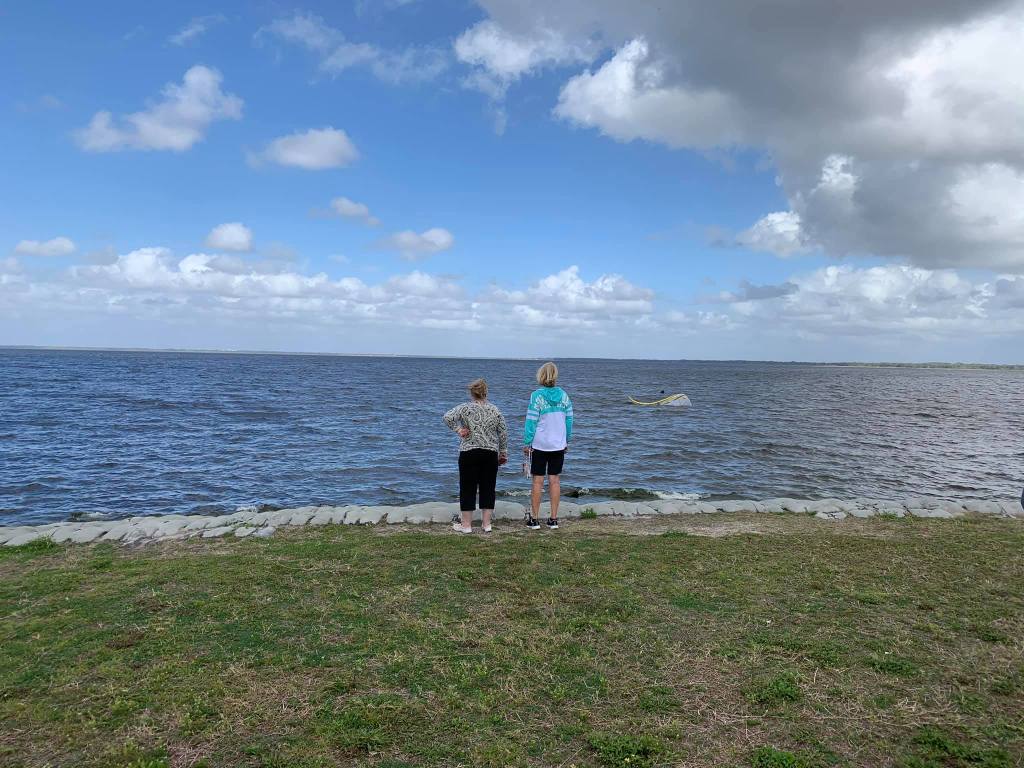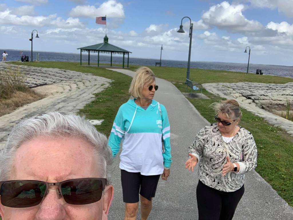 Standing on the break wall Lynda and Sherry watching a wind sail trying to catch a breeze and get up out of the water We shared many a laugh just like old days somethings just never get old!Strolling the path talking and just enjoying the company