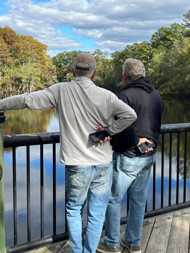 Cindy and Jim scooped a lost ball – while the rest of us watched the water – never did see any gators!