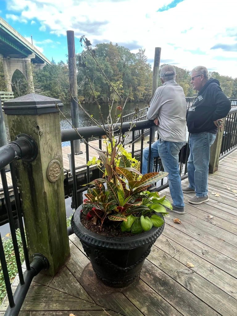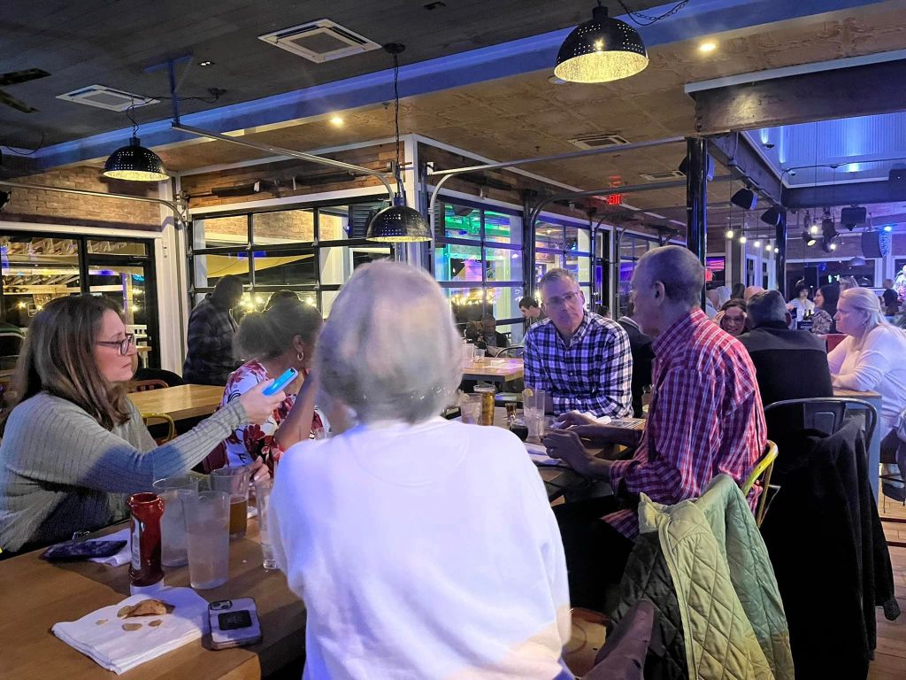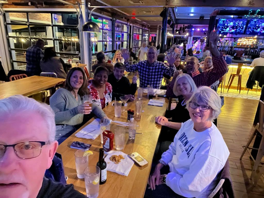 Here is BILL – checkered blue shirt – talking to George – we went to Local on the Water –
