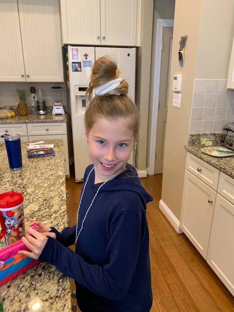 This was taken before Ella’s soccer game and during her older sister’s game. Both play – Maddy is the starter on Midfield – varsity and Ella starts as midfielder on the J.V. team.