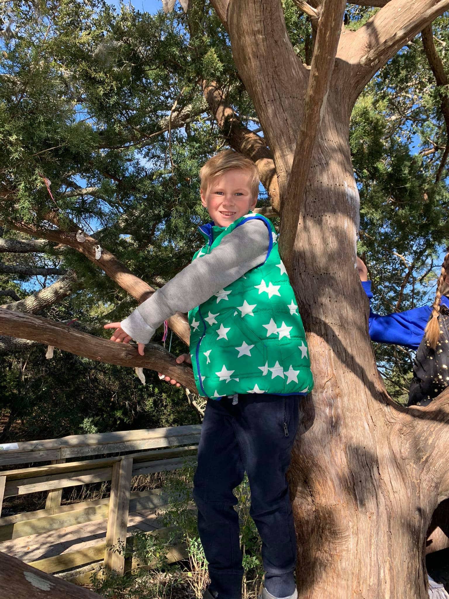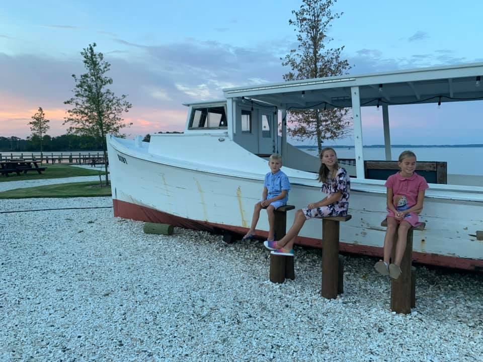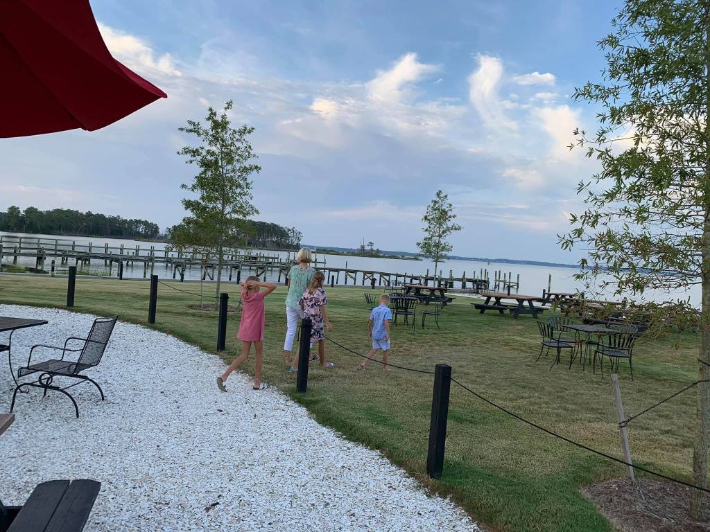 Sherry taking the three little ones to look into the bay where they saw a dolphin up close!On the other side was a marina with tons of docked boatsBode Taylor Cassidy