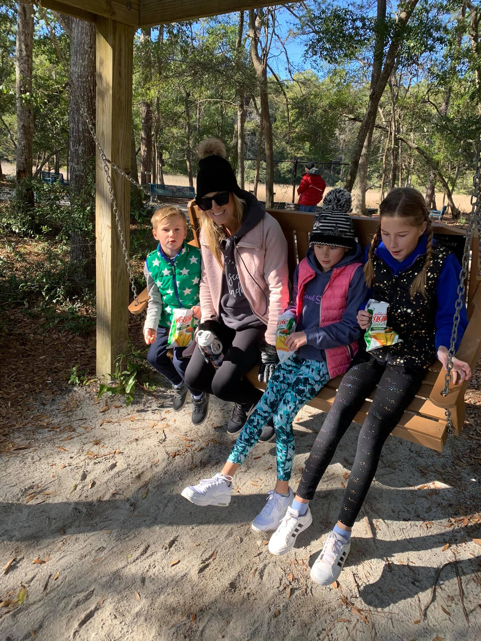 At the end of the hike – snacks and a swing – life is good and feeling blessed!