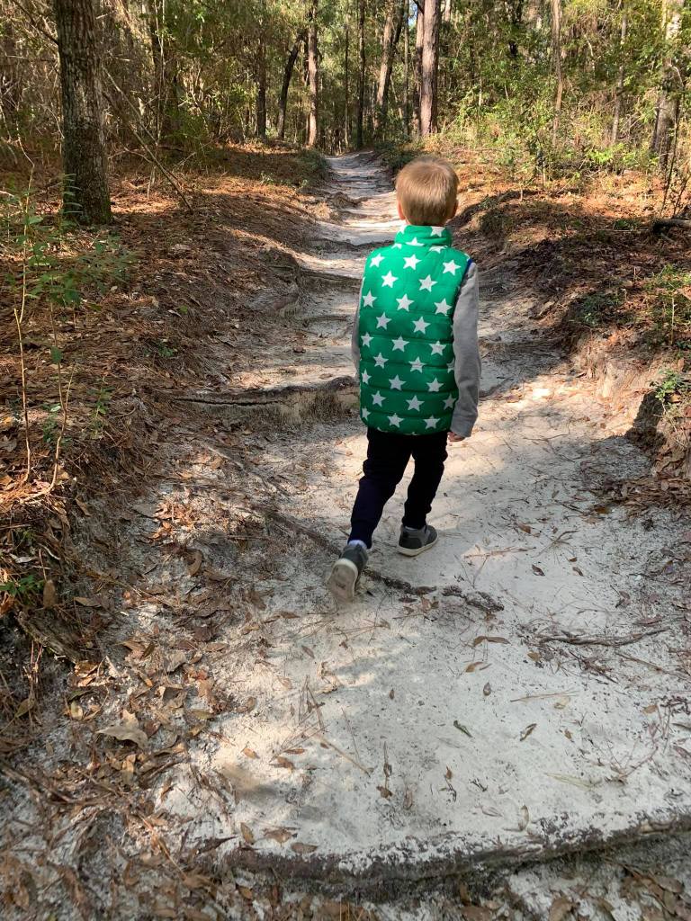 Bode – entering the forest for our hike – along the ICW and the marsh land – no gators – at least we saw none!