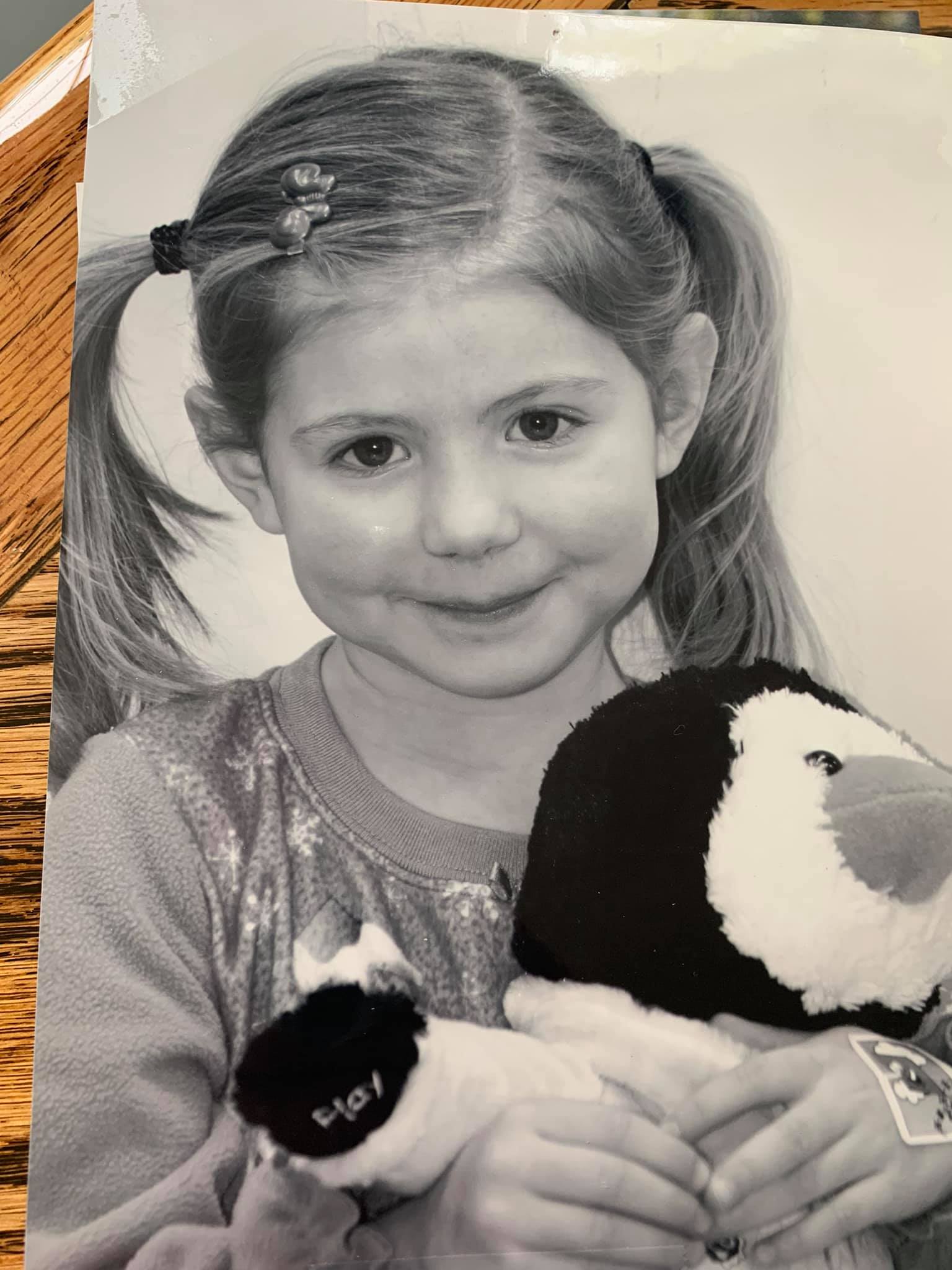 Olivia holding the picture of Ella as a little one – have gown up together as neighbors and best friends.