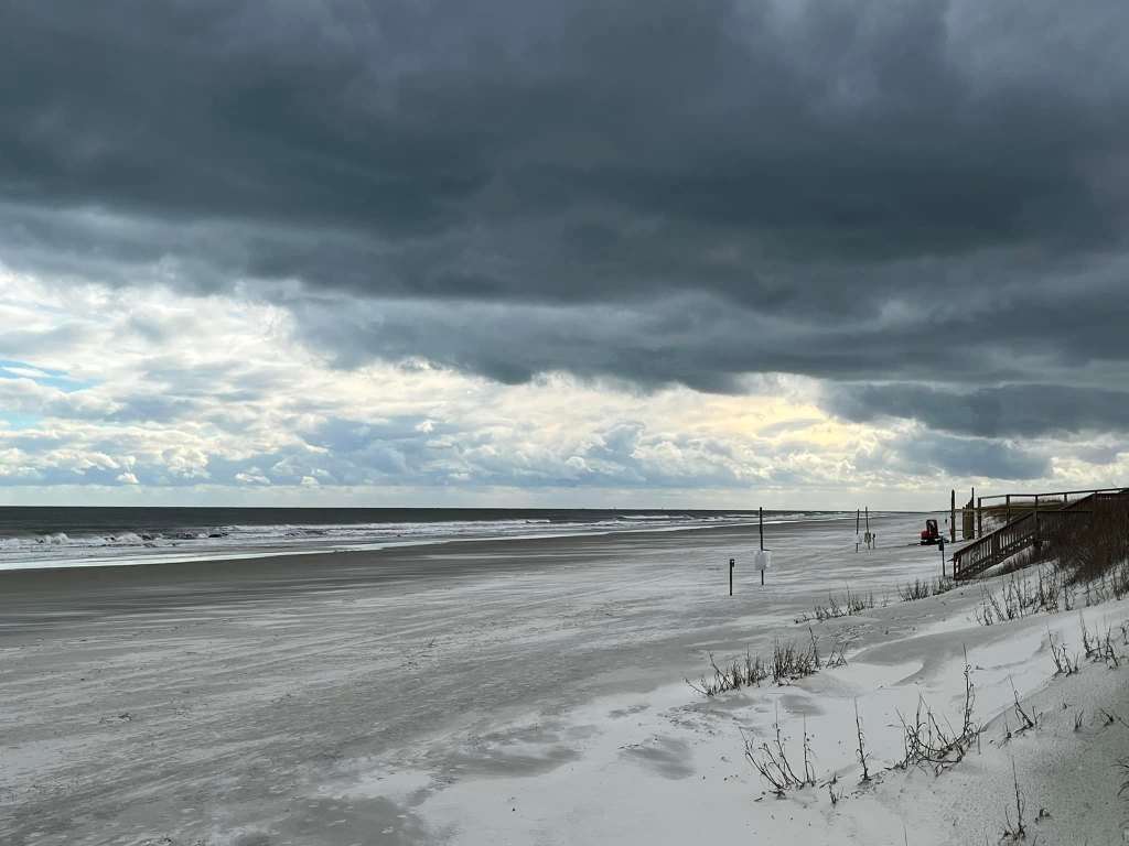 It was so warm the day before people were sitting on the beach and wading in the water!