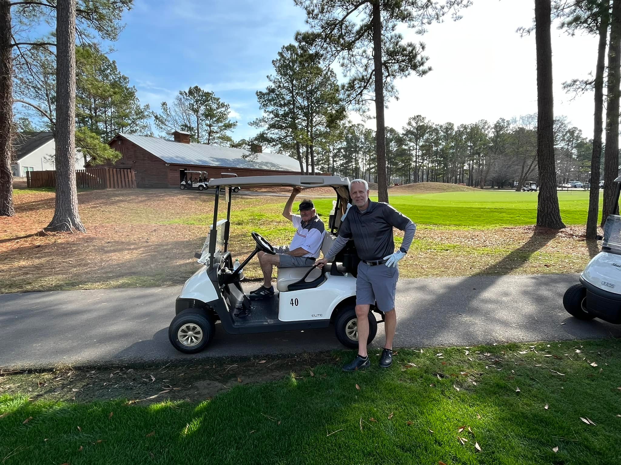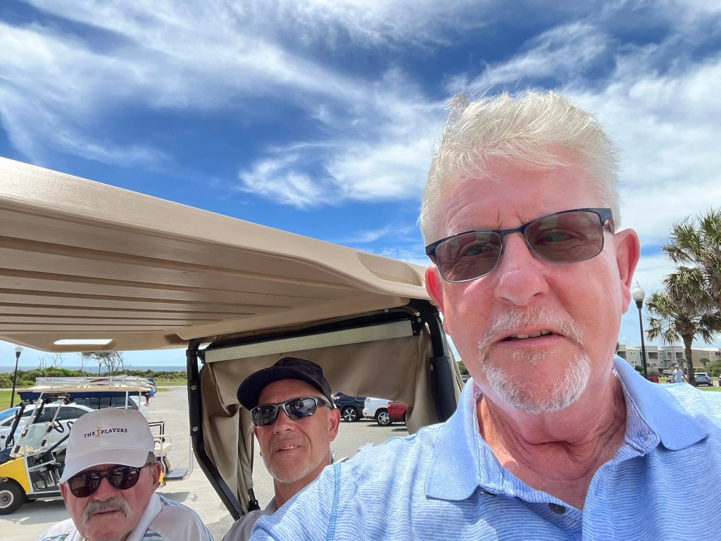 Buck and I get ready to tee off ahead of the ladies – they want to follow us!