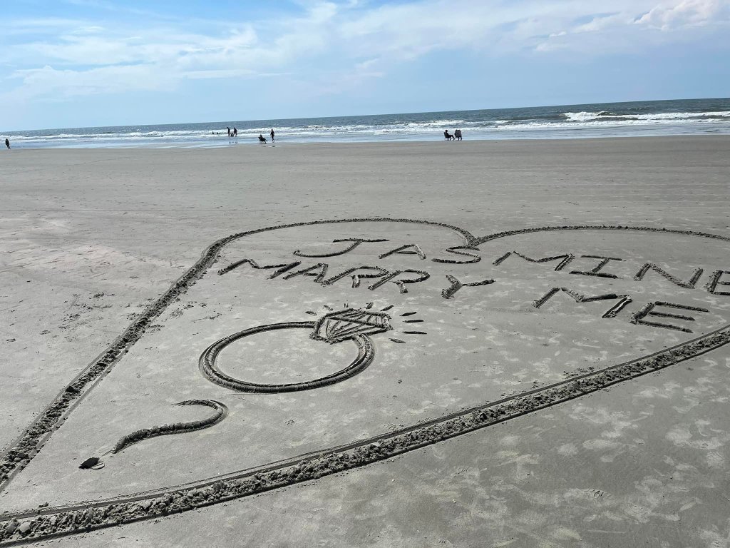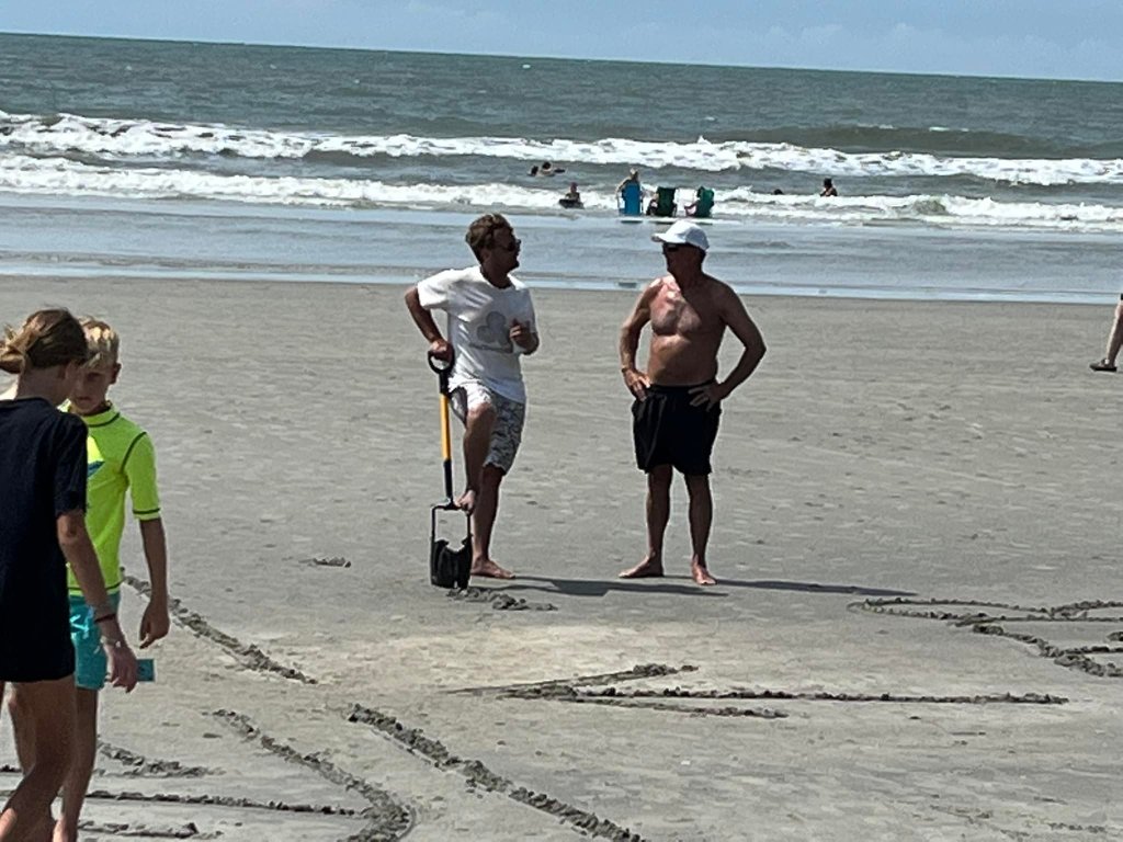 Sherry takes a selfie of Taylor and Bode solving the MAZE on Sunset Beach, N.C.