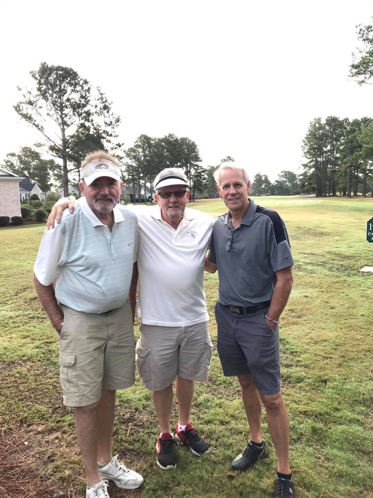 Buck Tom Jim The three amigo’s friends Jim and I go back to playing softball in the late 70’s early 80’s Buck and I 39 years We watched as all three hit this island green par three – with water on three sides they were putting for birdie!