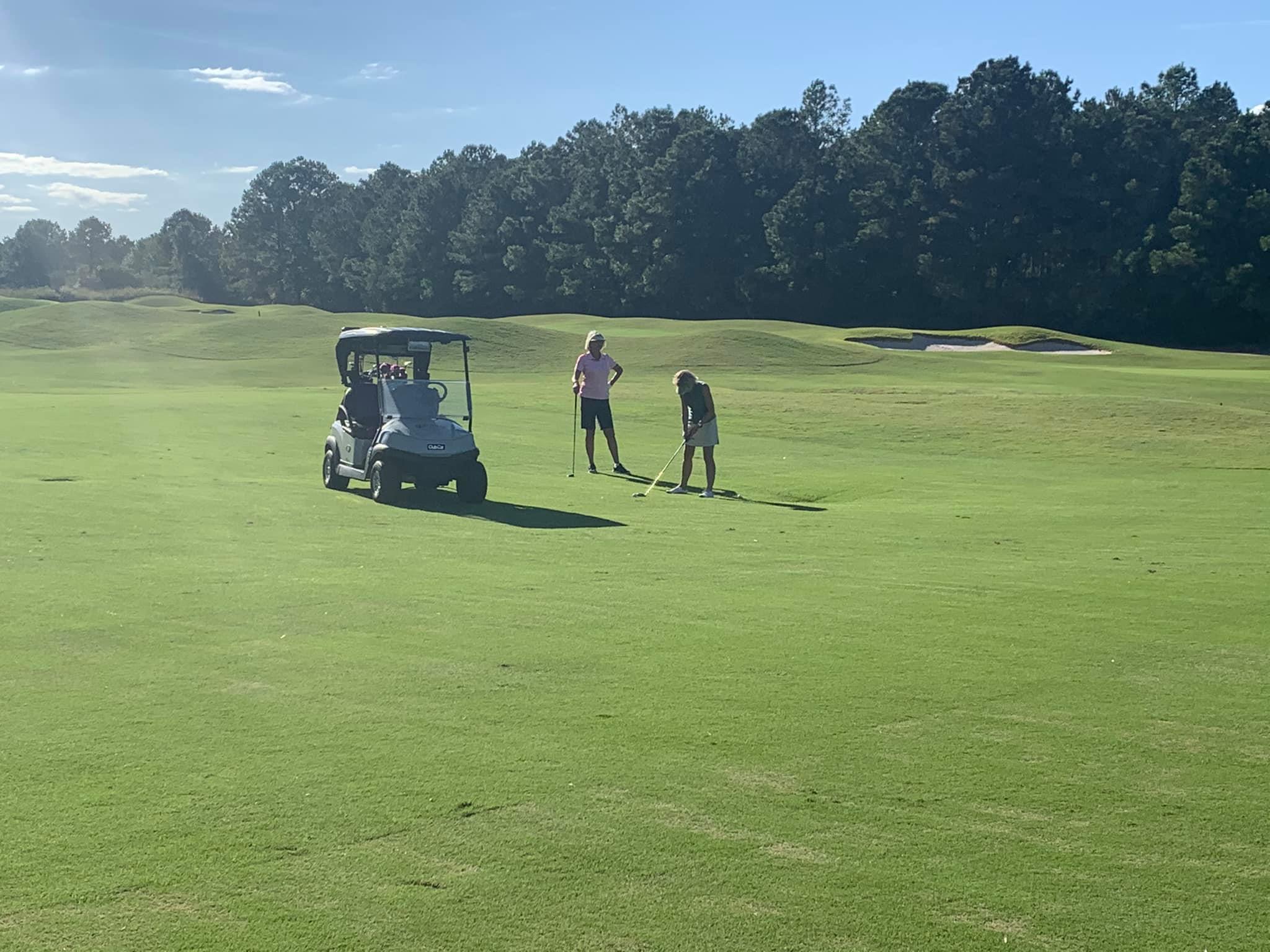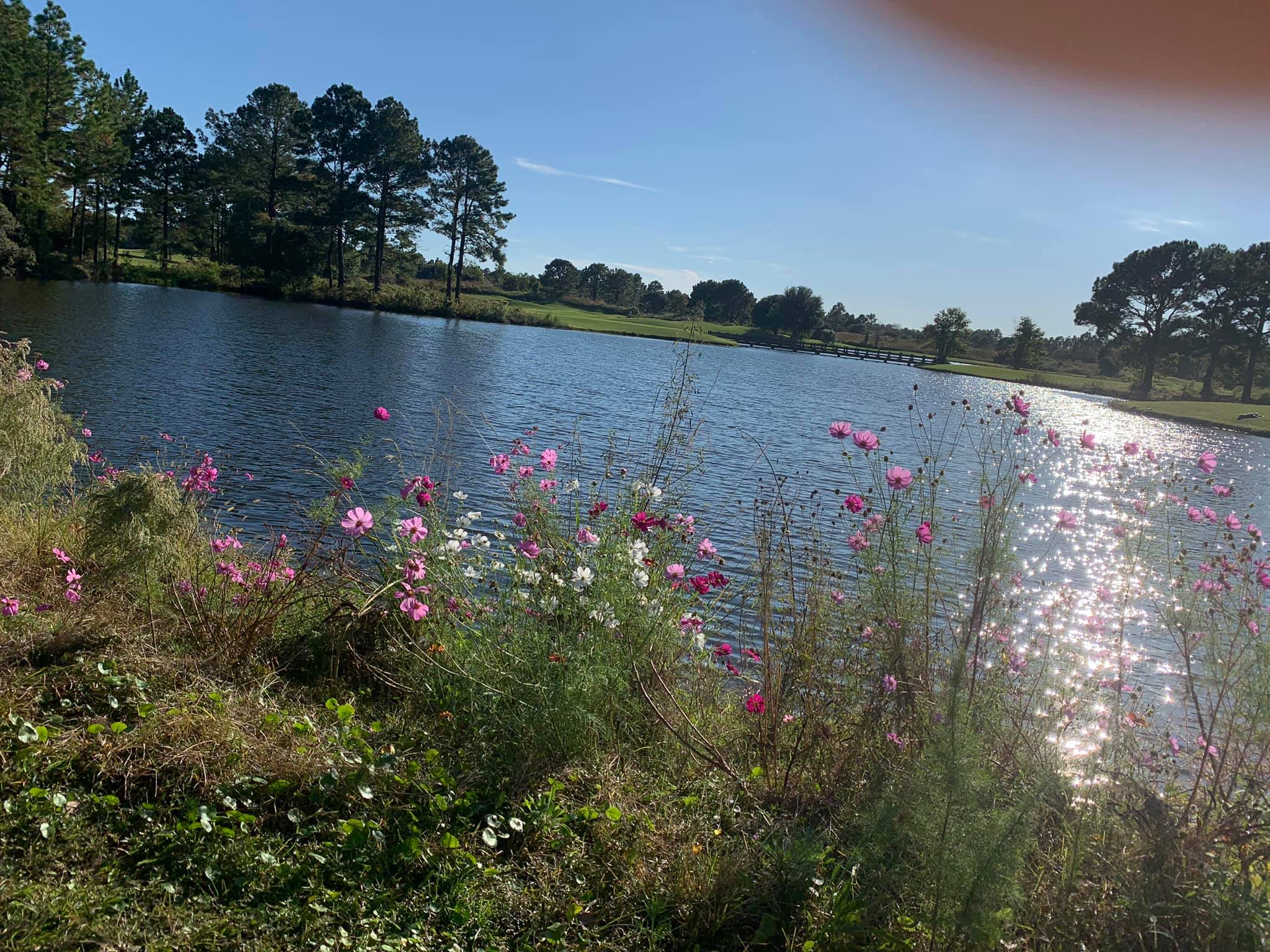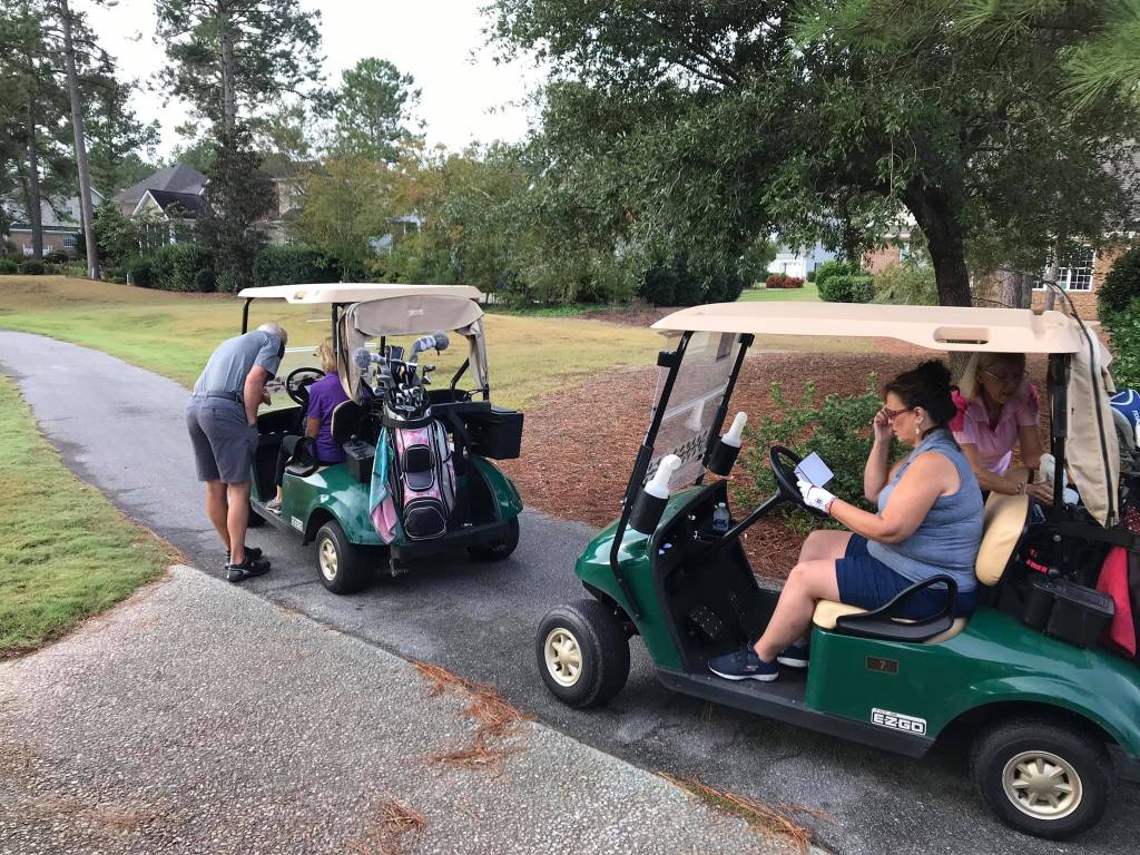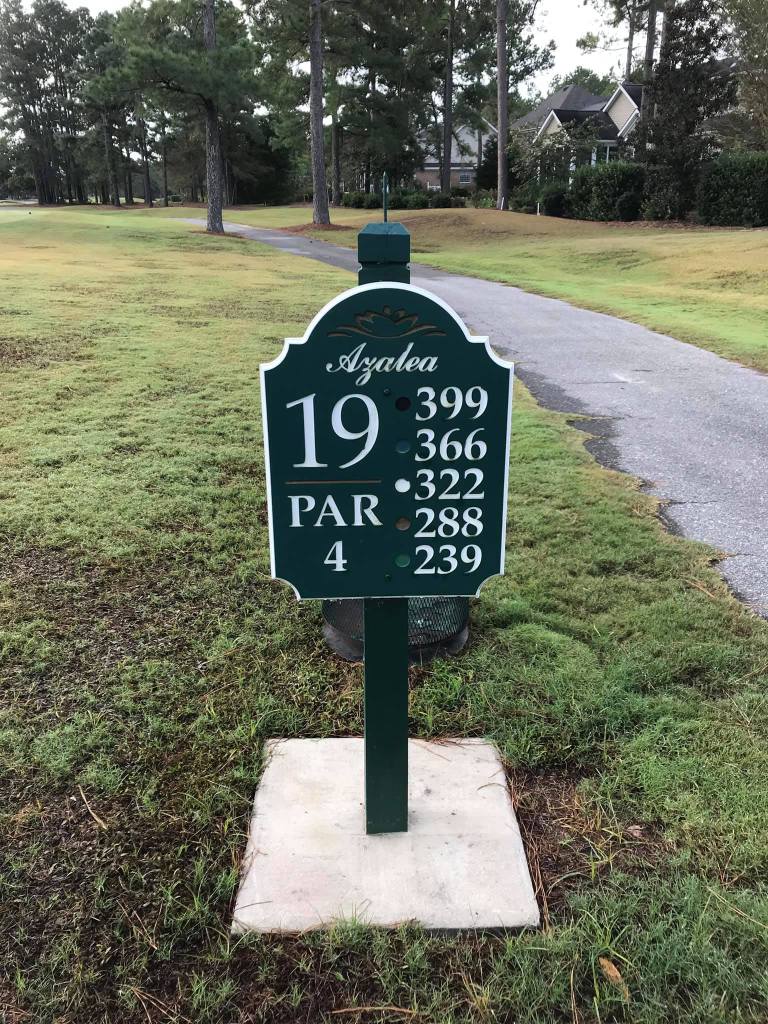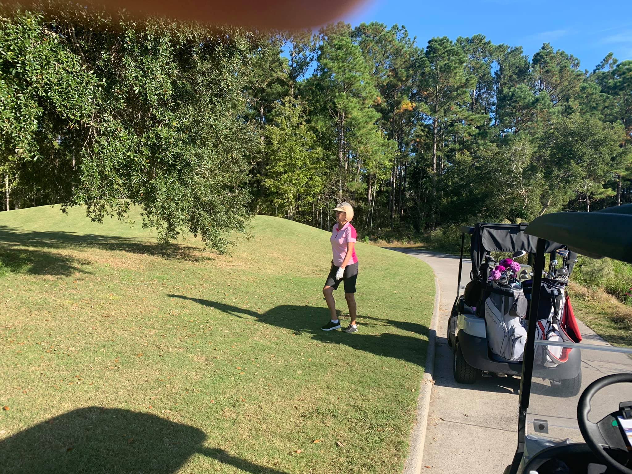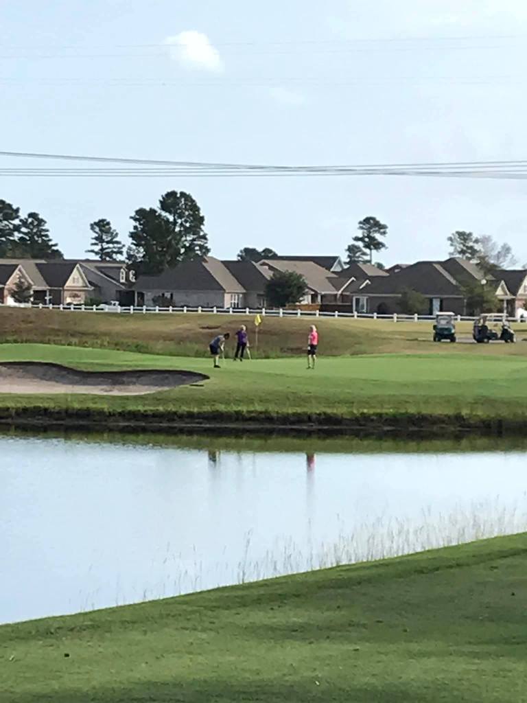 They started us on the back nine of 27 holes The Azalea course which the 24 th. fairway runs right behind their house ! View of the 24 th. fairway behind Cindy and Buck’s house in Magnolia Greens