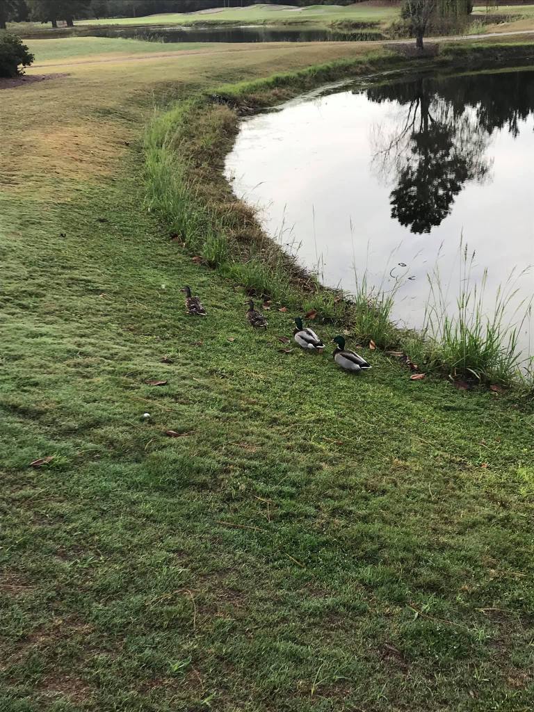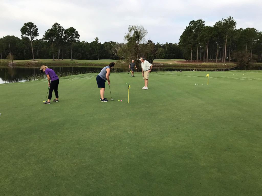 Buck Dottie Jim Sherry discussing the course before we had to be there at 8:00 AM.Sherry putting green at Magnolia Greens golf course Buck and Cindy have lived here for I guess 15 years or more !Cindy Dottie Jim Buck greens were fast even with dew on them !While every one else was putting Sherry was chasing ducks ! LOL