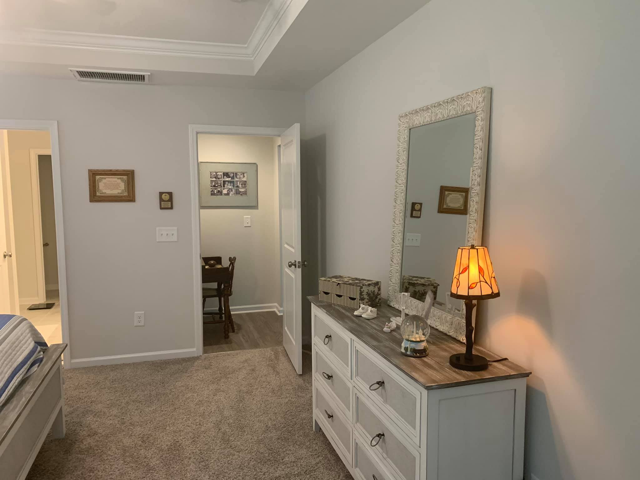 We were worried about beds to sleep in – and we have enough plus our office ( blow up queen mattress to sleep both families) plus we needed storage for clothes and items – by planning with extra drawers and arranging coat closets and linen closets plus the overhead storage in the garage – we have come up with ample space along with oversized night tables and storage shelves under one bed.