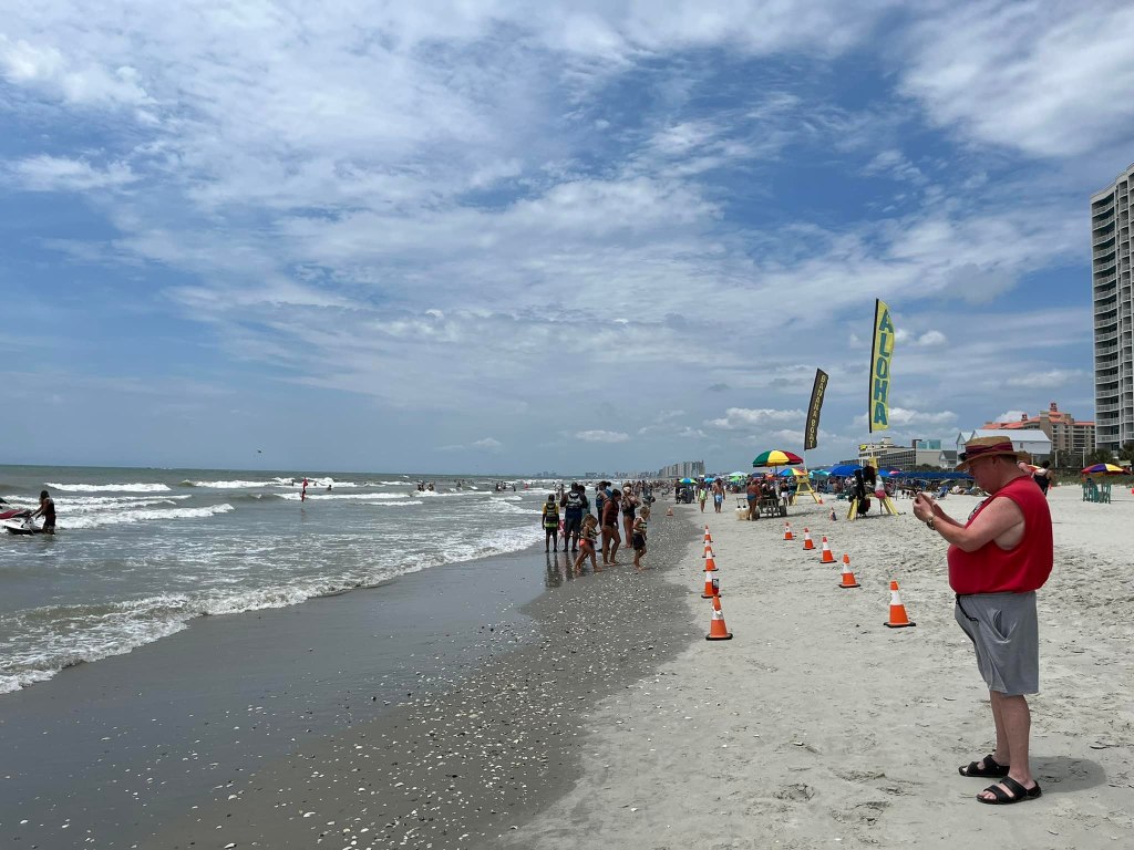 Then find the beach access and come to a sign at the beach – it tells you the distance to the mailbox and further down the beach – the jetty and the mouth of the river – where the Casino boats from Little River enter the ocean – going out to the International border line to gamble.