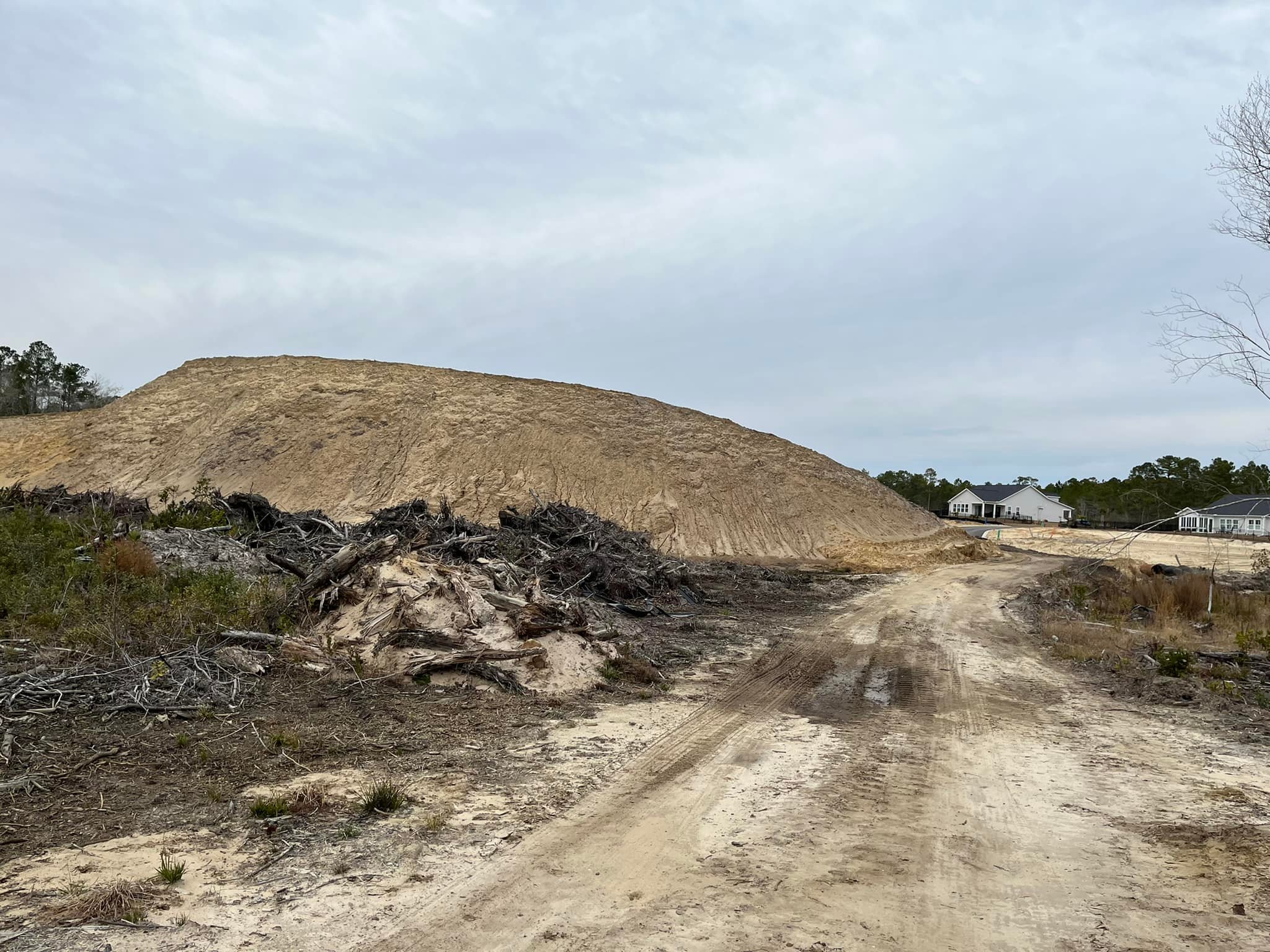 Beyond these woods will be the final construction – there are no roads in there yet except one access road – and a very large pond – although all the trees have been cleared.