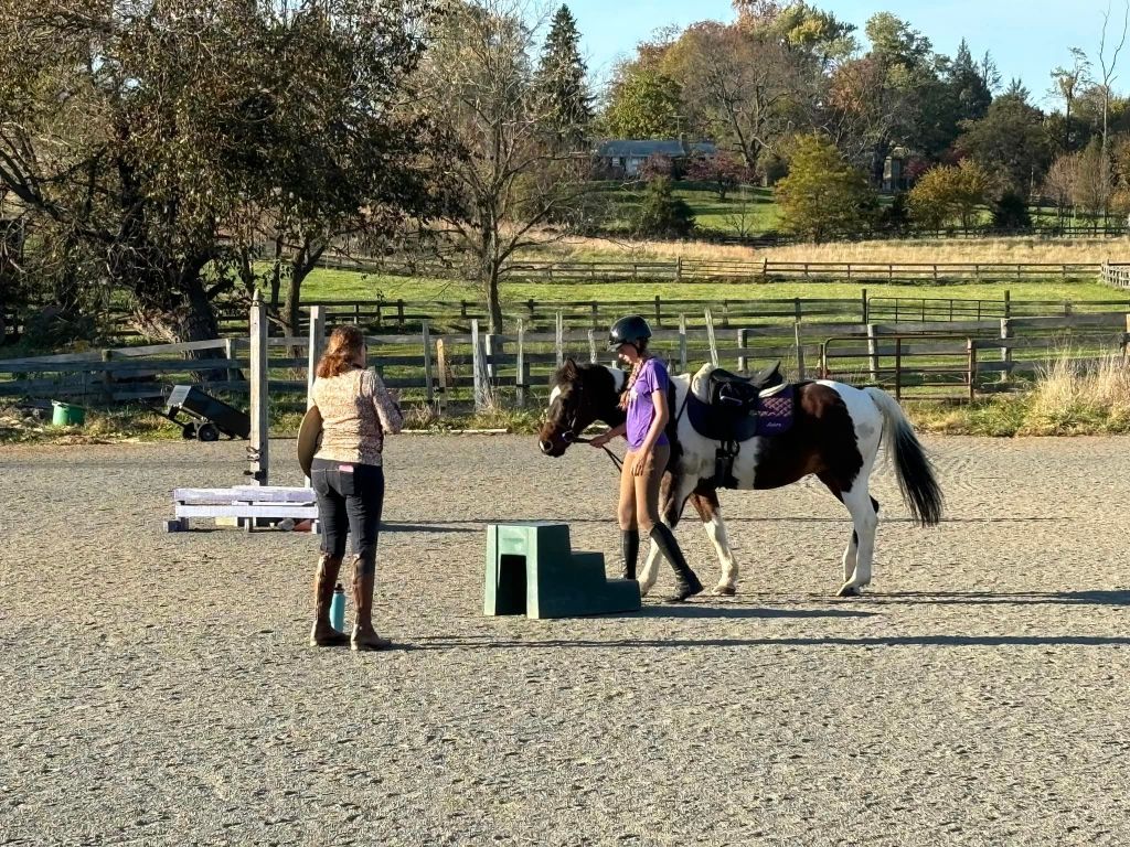 Now she is a regular at the riding stable and volunteers to groom and take care of the horse’s stalls!