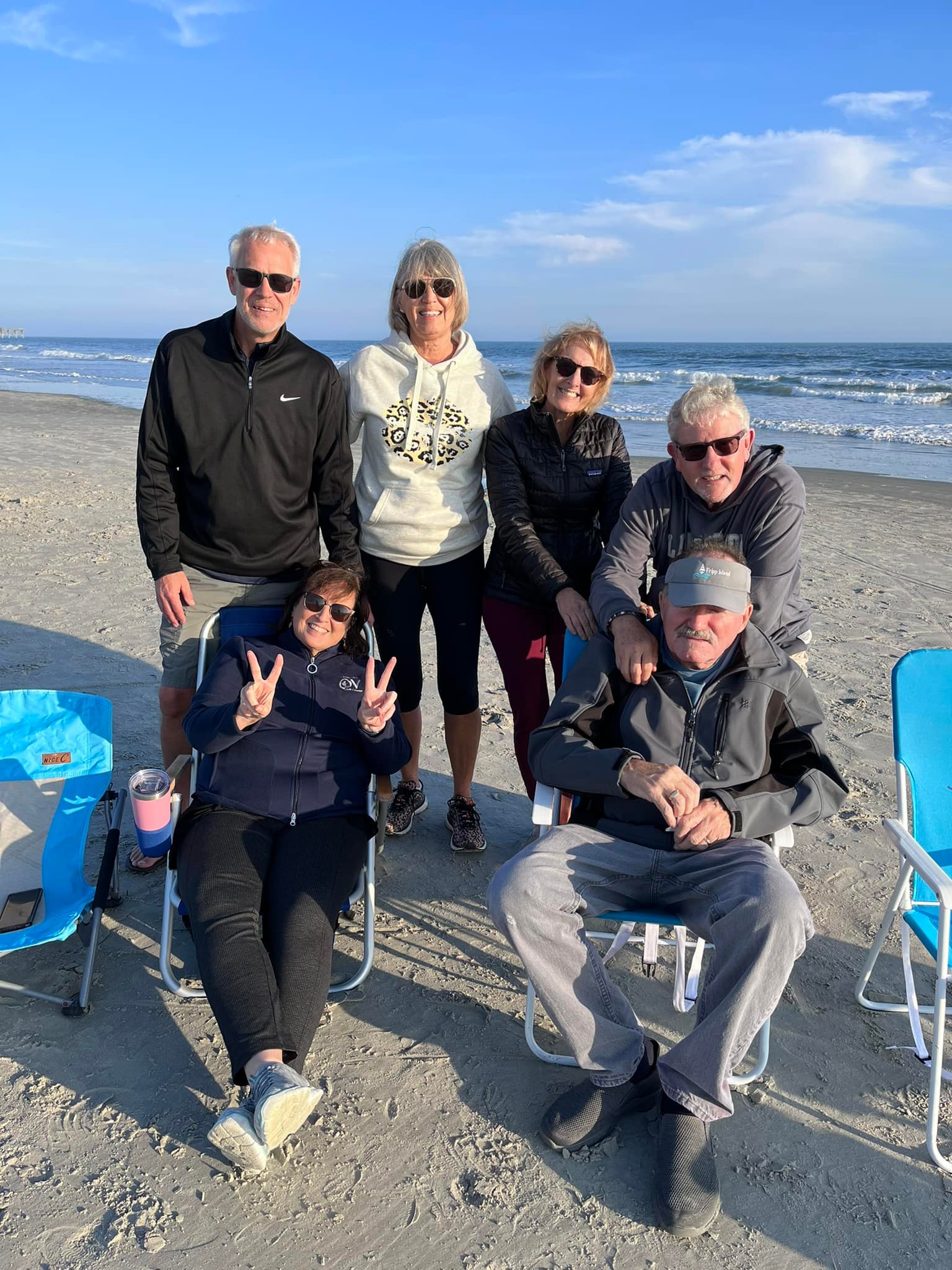 Sitting on OIB celebrating both of our 75th. birthdays with family.
