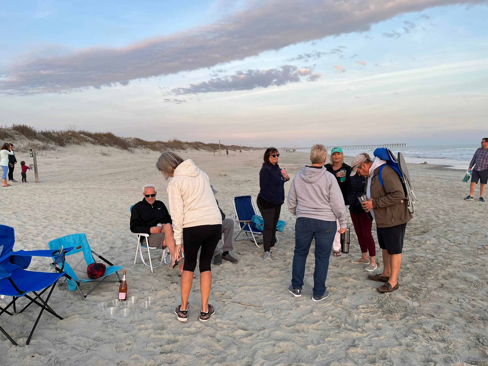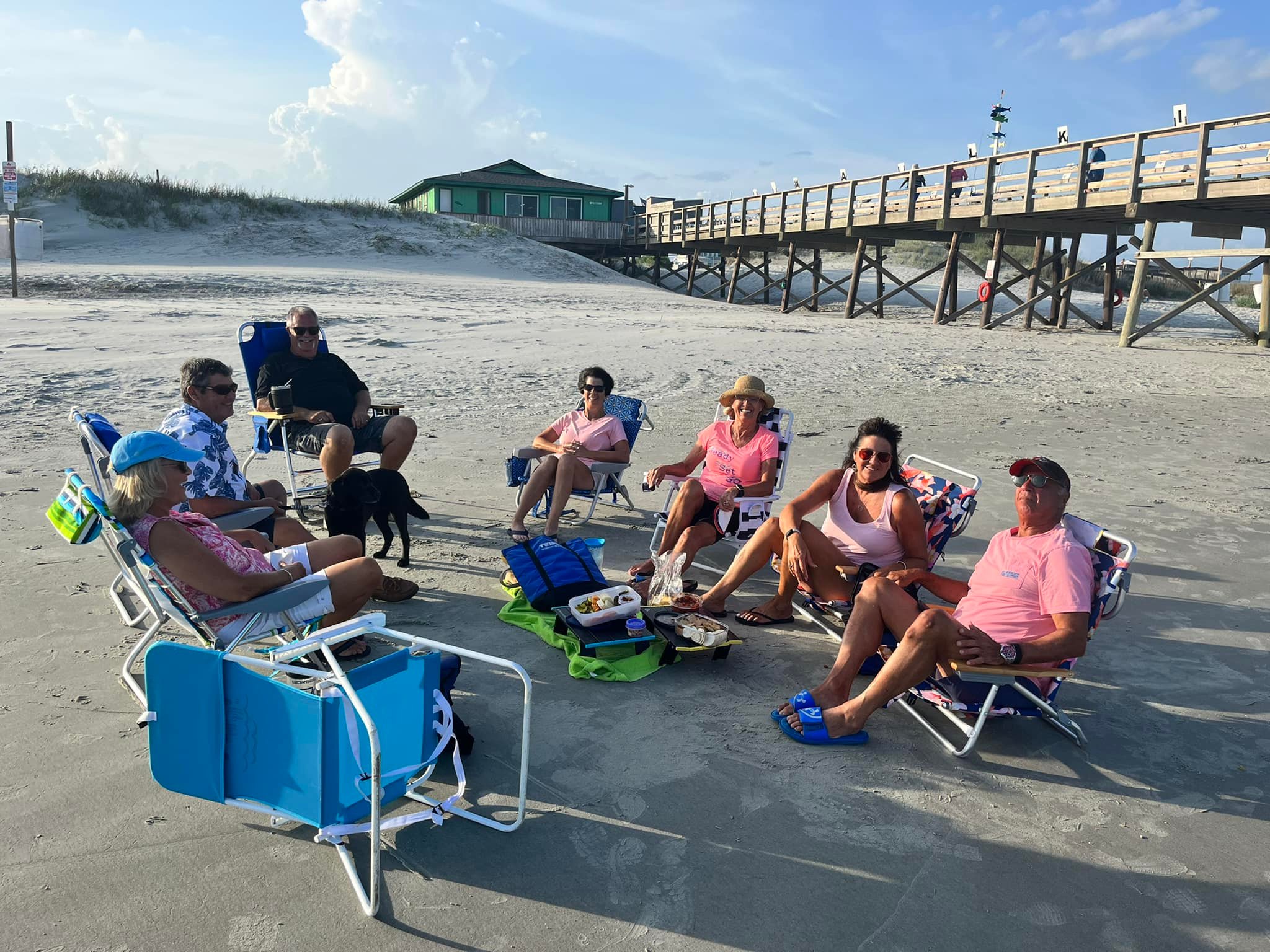 Papa and Sherry on the beach with the pier in the background.