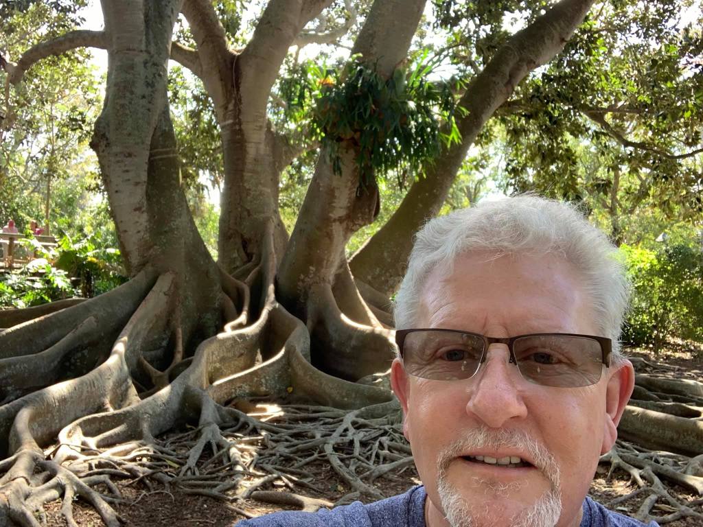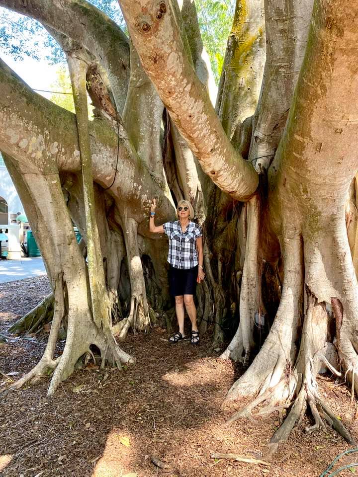 Papa and Sherry – hugging a tree in Sarasota , Florida – we had considered moving here – but it was just too far to drive for family and friends and for us to go back home without flying.
