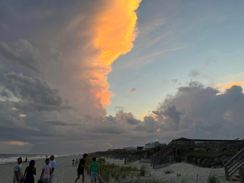 Below is a beach sunset at Ocean Isle Beach, N.C. Warm – water is warm – crowds have gathered –