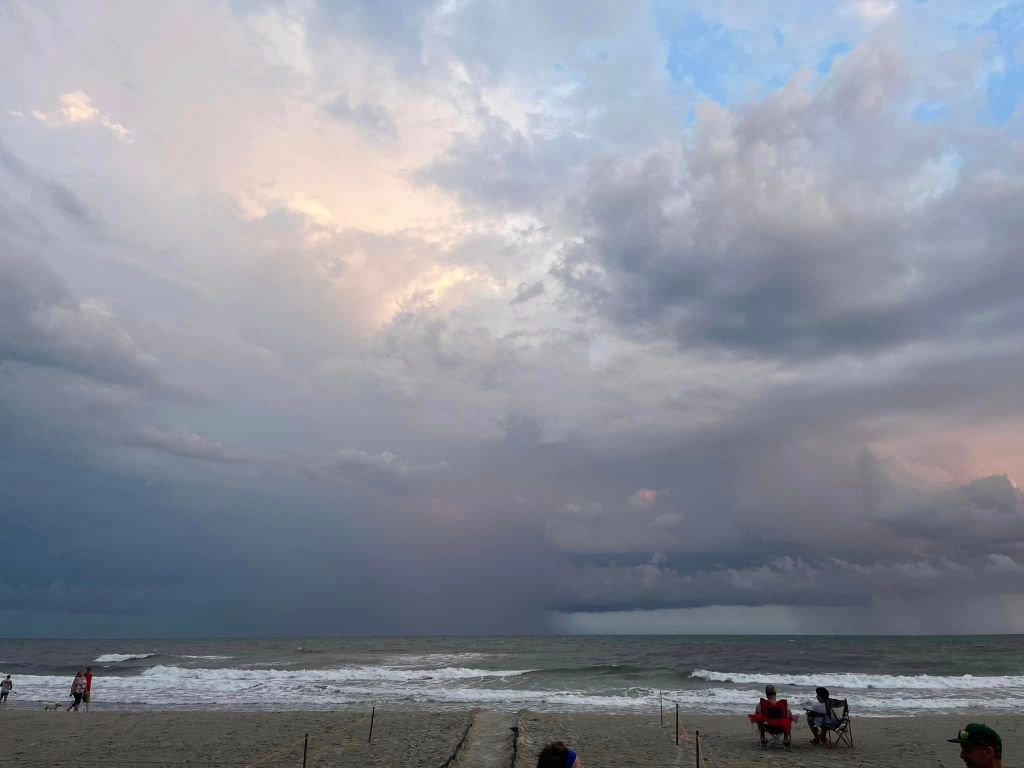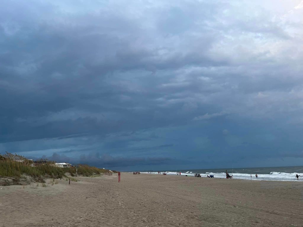 View down the beach toward the West end – the wind picked up and radar showed lightning strikes some 13 to 15 miles away!