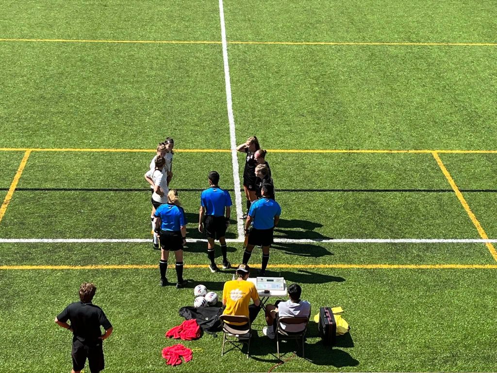 Ella – standing after the game – her knee wrapped in ice.