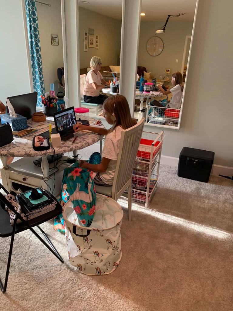 Standing in line as we all watched – her forst time and she handled it like a pro.