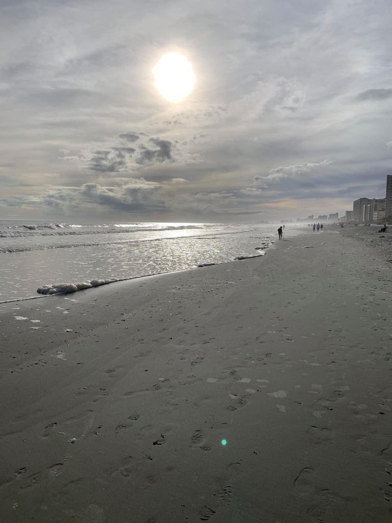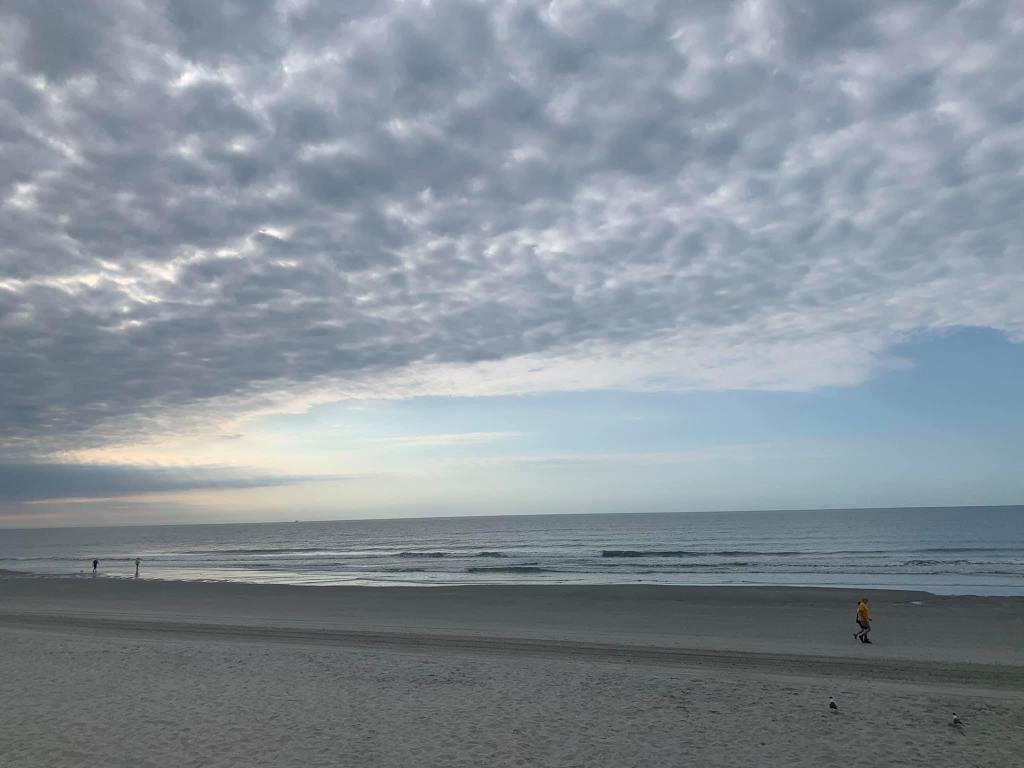 They were mostly silent – a few murmurs here and there – ushers directing people – passing out communion cups and wafers – a few announcements – still cold – but at least there was no wind. The sound of the surf – the seagulls – the stillness of the early morning hour – the sand cold – bundled up – ear muffs and scarf – waiting – waiting – waiting.