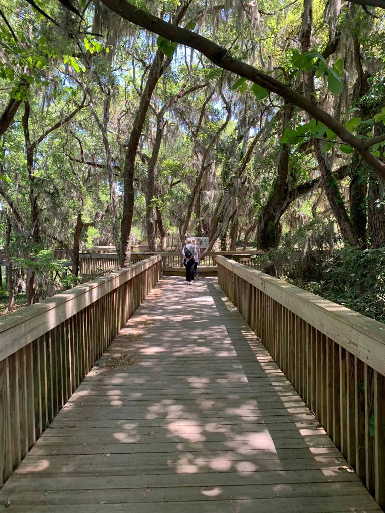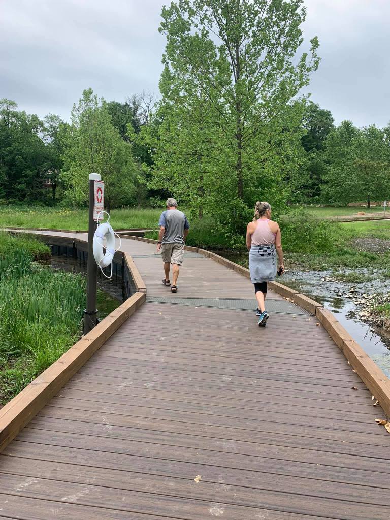 Papa and Debby walking the newest feature a boardwalk circle with water on all sides!