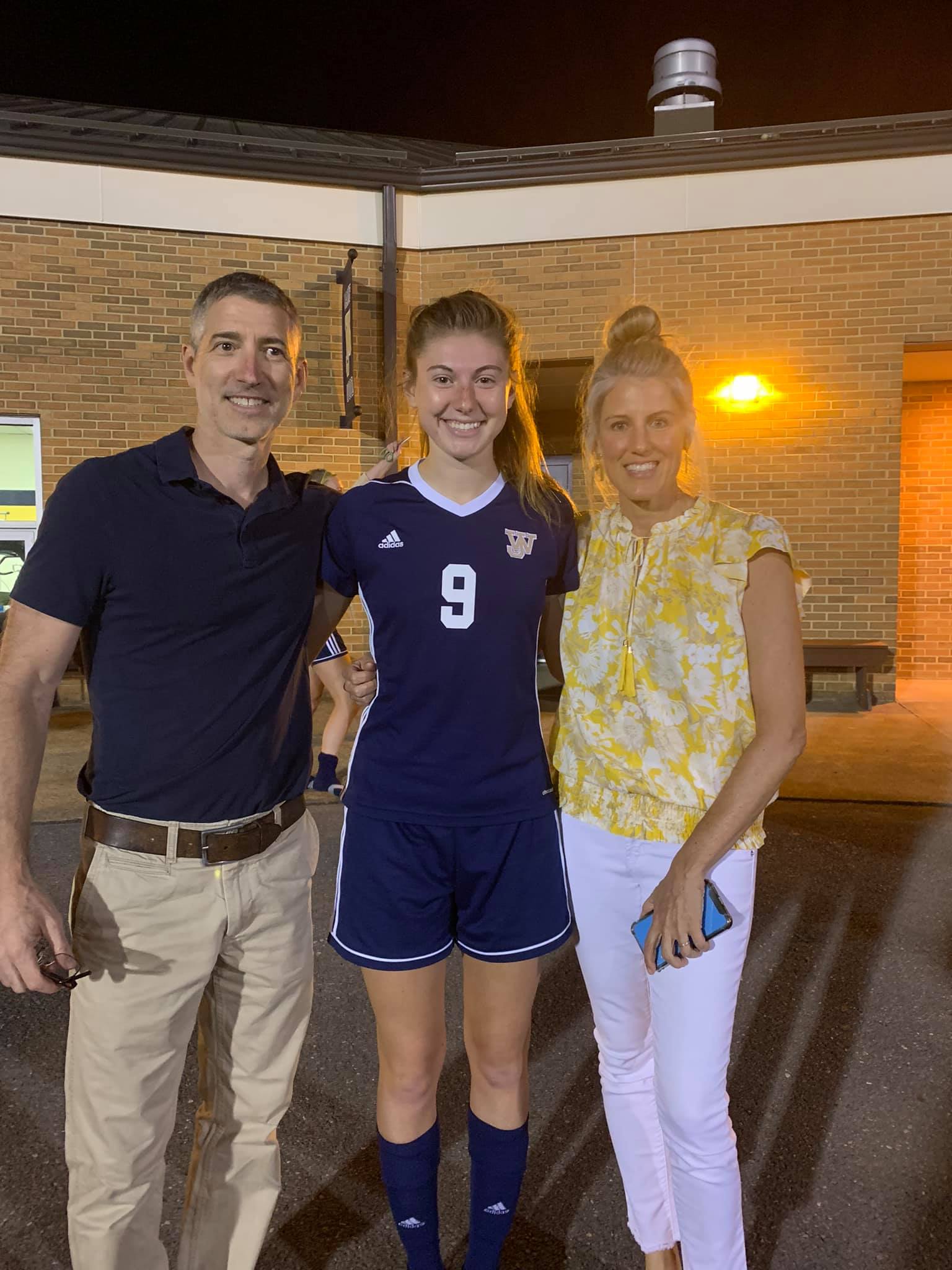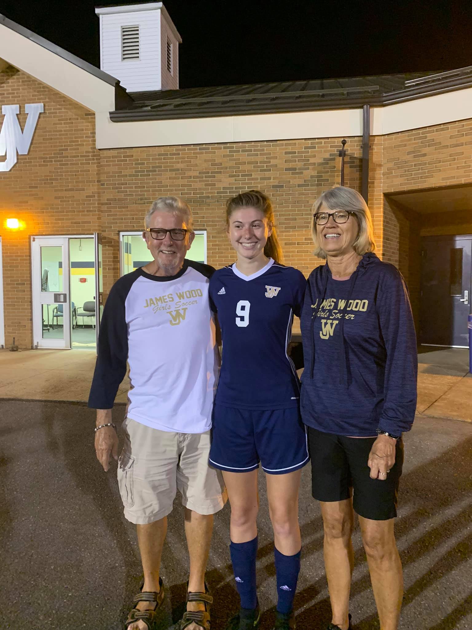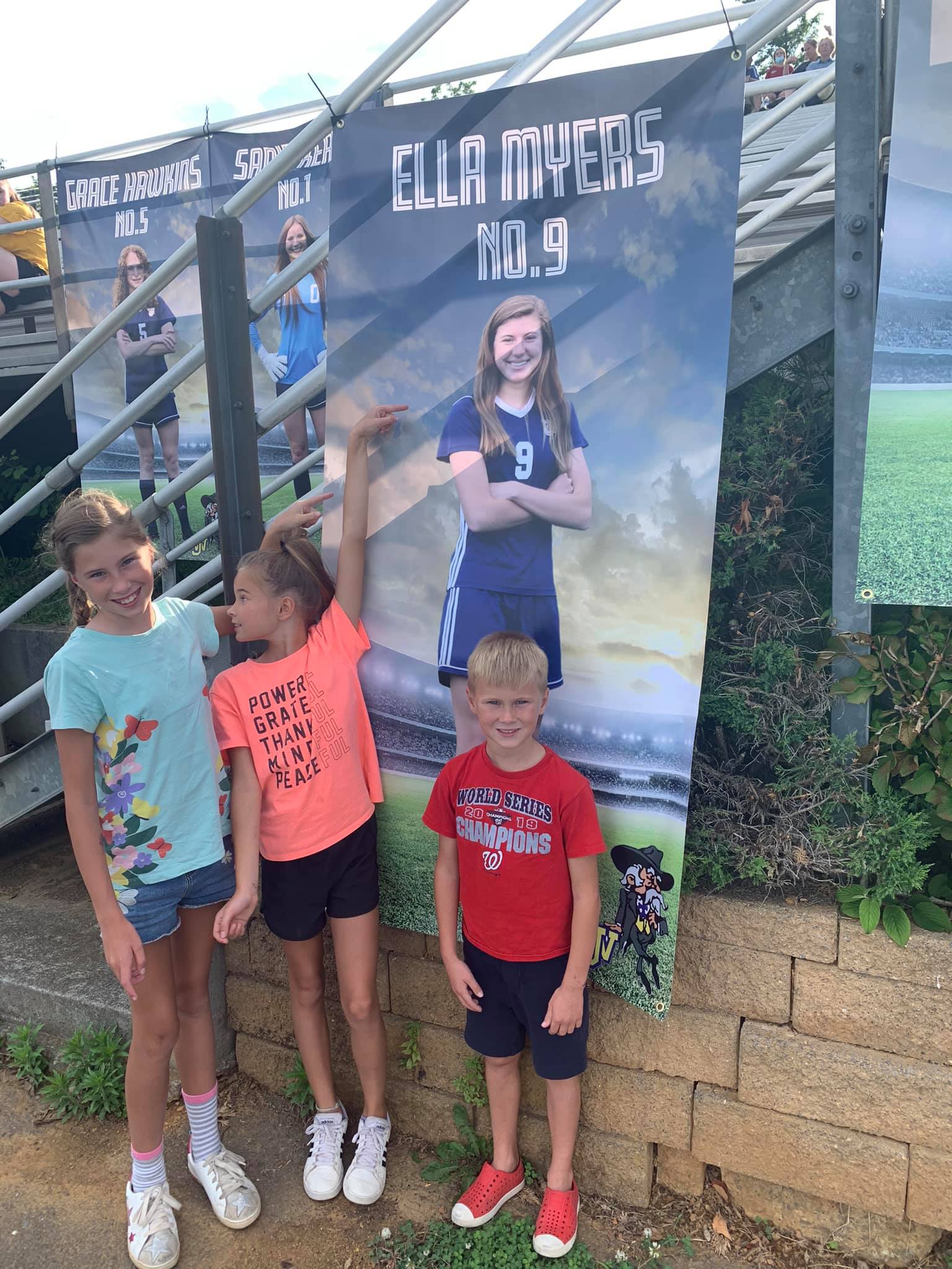 All family – friends and neighbors who came out to support Ella and her being honored pregame.The only boy in the grandchildren with Ella’s Sister Maddy – they will compete against each other in college soccer!