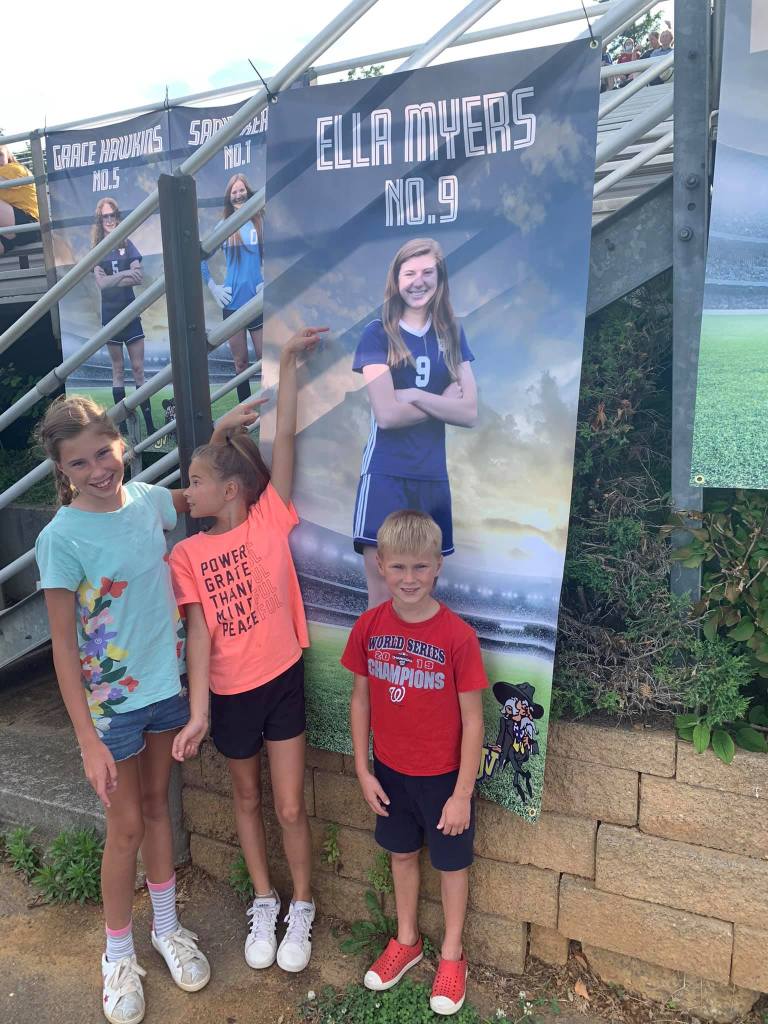 We made the trip back to NVA to see Ella play soccer for her senior recognition night and picked up the three little ones so they could cheer her on! Taylor – Cassidy and Bode.
