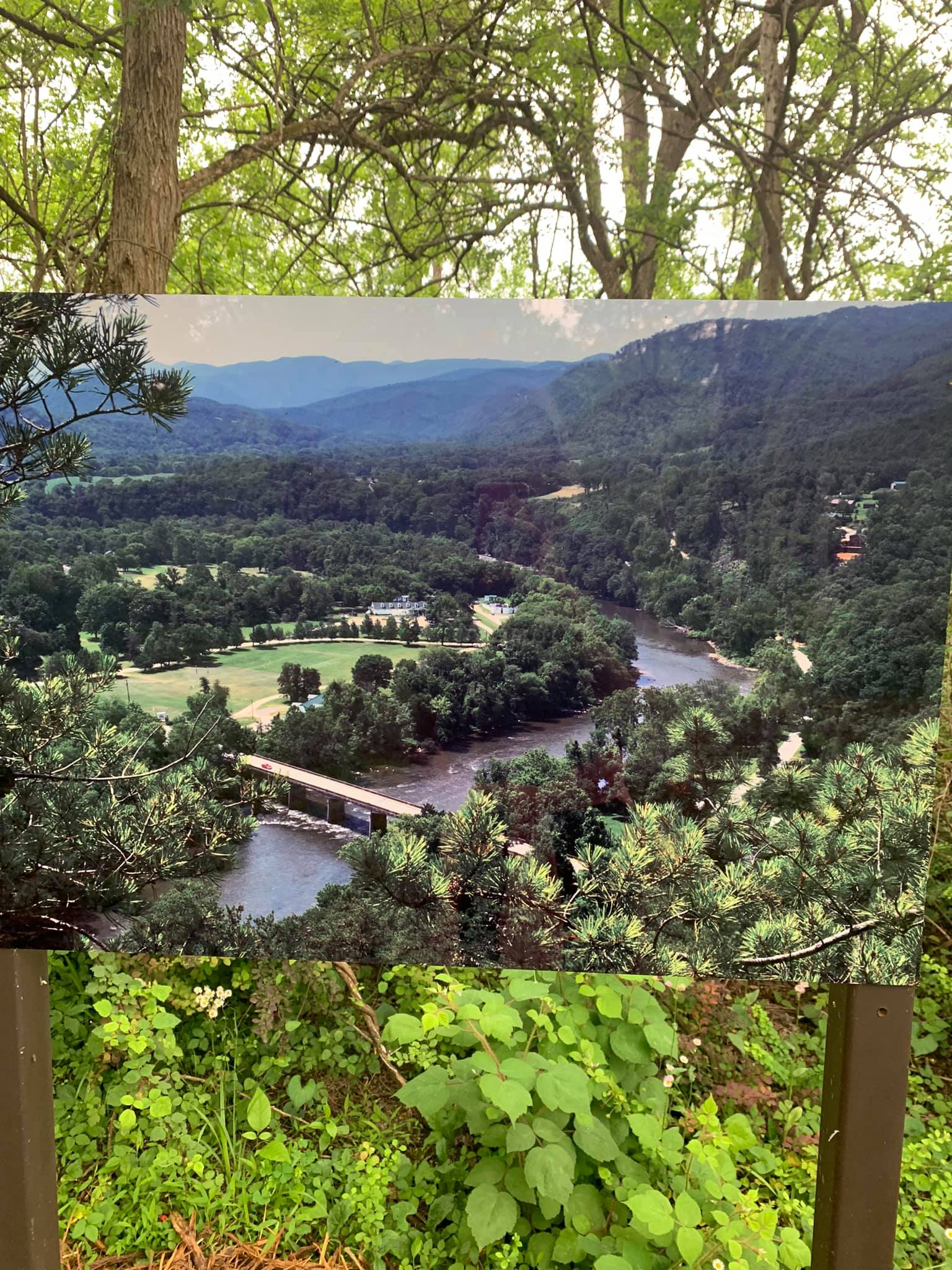 A picture along the trail in a display for a resident hiker of the Appalachian Trail she took beginning to end.
