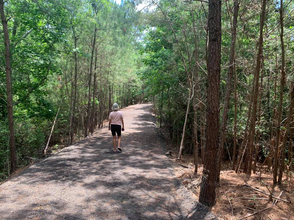 Into the woods – the path winds through the wooded area and in the shade – a lot cooler on a hot 90 plus day!