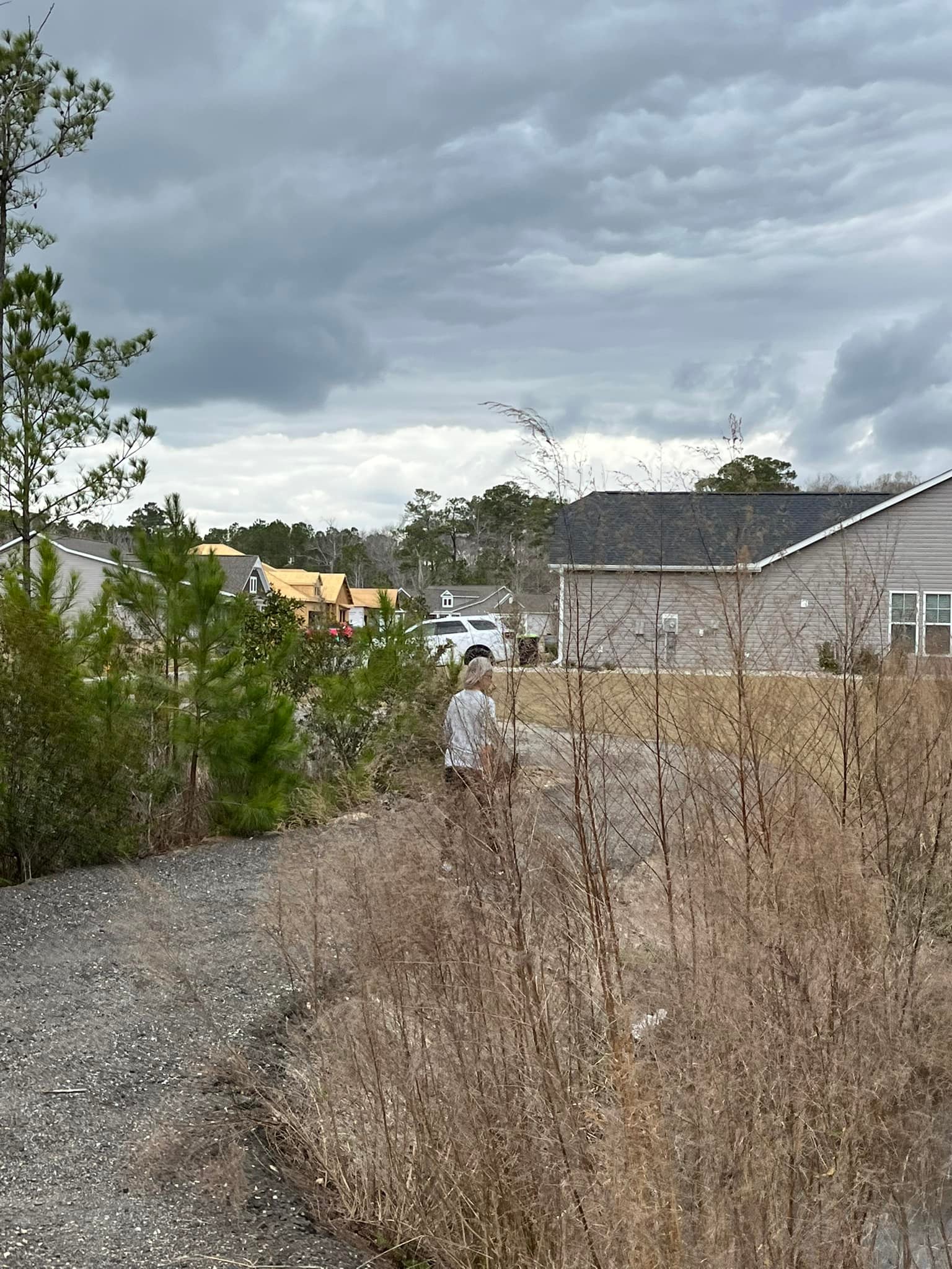 The community center – pickleball courts and pool will be on our left at the top of the hill and our mailboxes will be on the right-hand side in a small cul-de-sac.