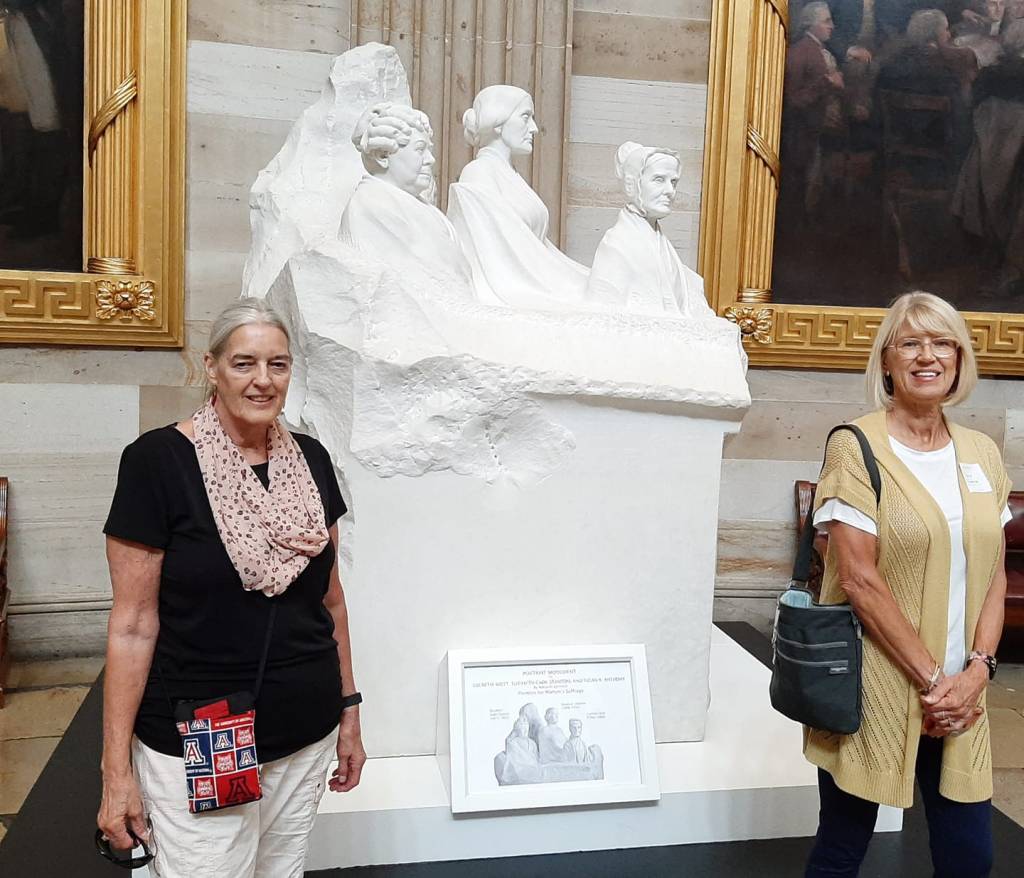 Jo and Sherry standing in front of a statue dedicated to the Women of the U.S.A. who have made dramatic changes such as Women’s rights to vote This statue is left undone to signify there is more to be done and one day A WOMEN SHALL BE ELECTED PRESIDENT !Sherry CERTIFIED HEALTH COACH for contact http://www.sf.juiceplus.com for business and advice email ssherrylynn49@aol.com
