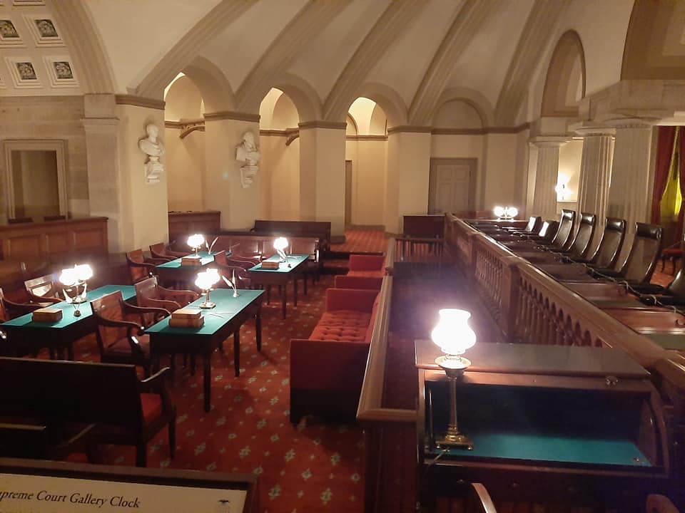 The original statue that was to be placed on the dome was too heavy so they made a lighter one that now stands and faces the executive branch watching to over see JUSTICE