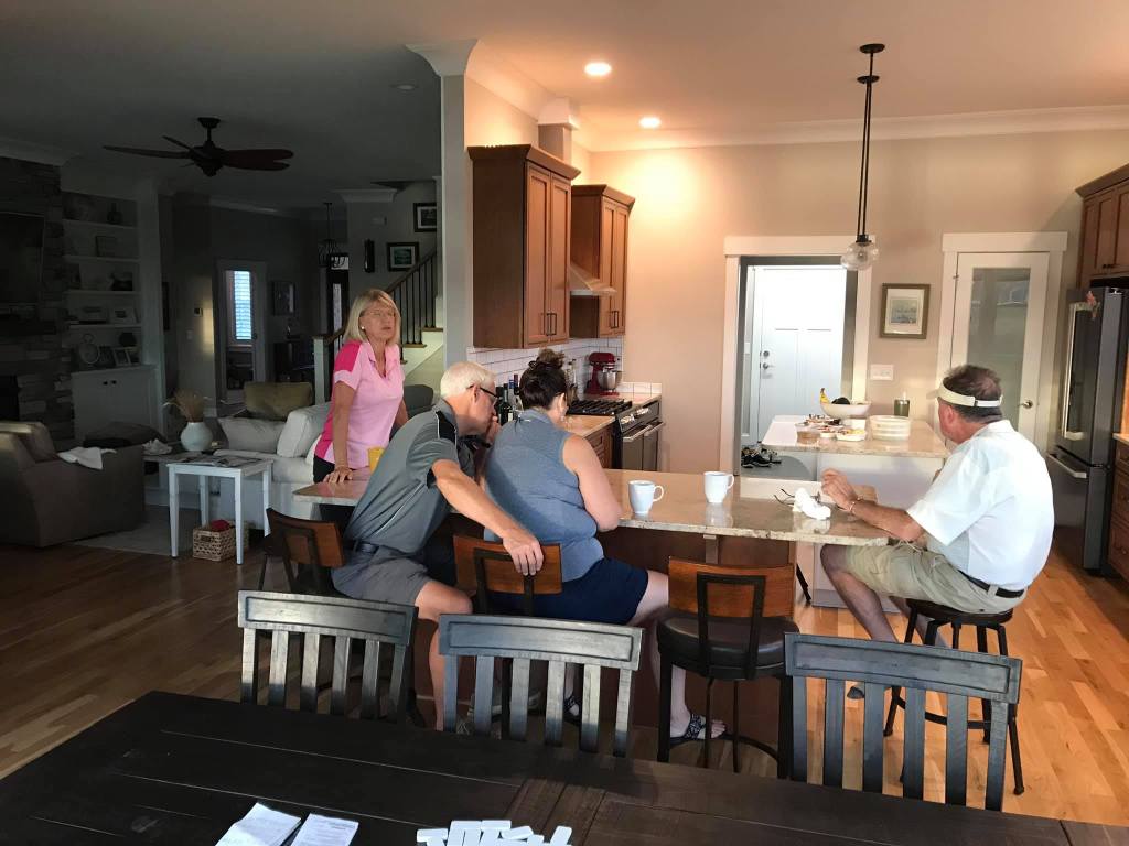 Buck Dottie Jim and Sherry in the kitchen with the view of the pond