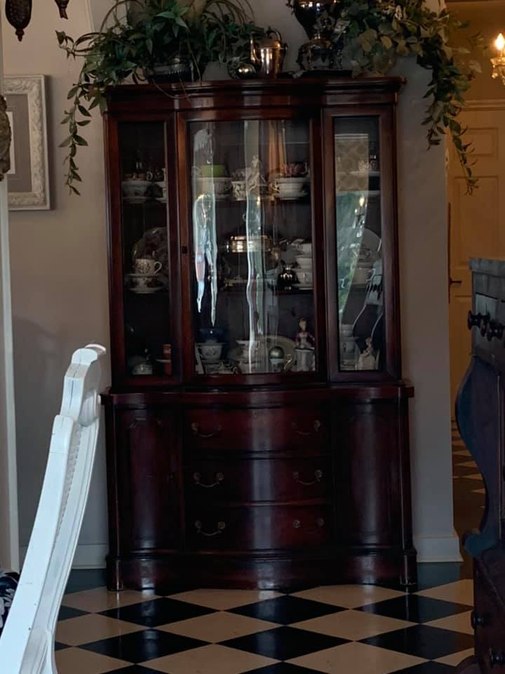 The living room – very cozy with a log burning fireplace to the right which we used – buying those burning logs from the store the ones you just light and it burned for a good four hours! Ella – our grand daughter laughed at it saying it was a fake log but it did put off heat! And beyond – a enclosed patio with walls going up past the window on the second floor!